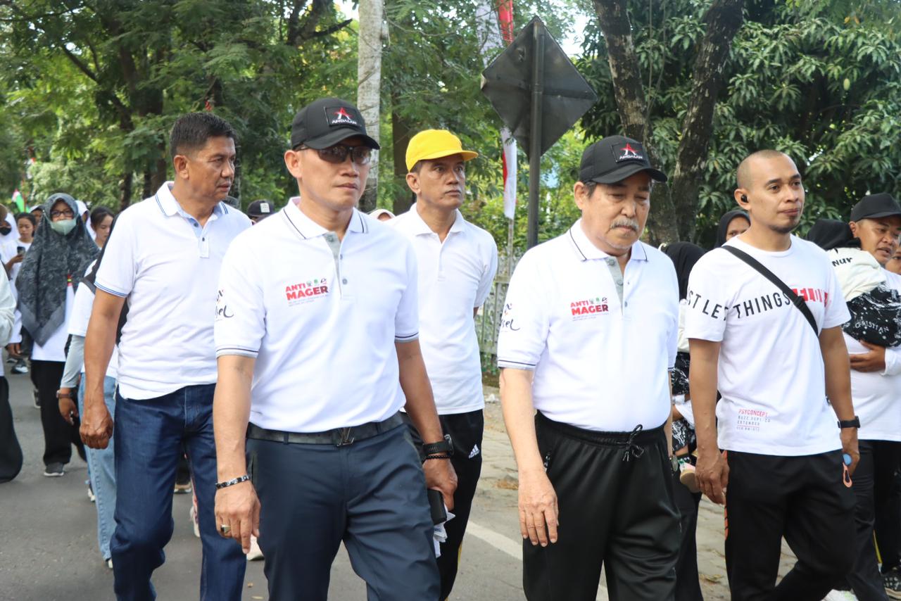 KeizalinNews.Com,SIDRAP (Sulsel) — Kapolres Sidrap AKBP Erwin Syah,SIK bersama Ketua Bhayangkari Cabang Sidrap Ny. Siska Erwin Syah dan PJU mengikuti Jalan Santai Anti Mager yang dihadiri oleh Gubernur Sulsel di Pelataran Monumen Ganggawa, Kec. Maritengngae, Kab. Sidrap. Minggu pagi (30/7/2023).