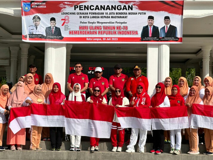 KeizalinNews.Com |Langsa I Aceh ,-Jelang perayaan HUT Ke-78 Kemerdekaan Rapublik Indonesia, Pemerintah Kota (Pemko) Langsa melalui Badan Kesatuan Bangsa dan Politik (Kesbangpol) Kota Langsa melaunching gerakan membagikan 10 juta Bendera Merah Putih juga dikemas dengan Car Free Day, di Lapangan Merdeka Langsa, Minggu (30/7).