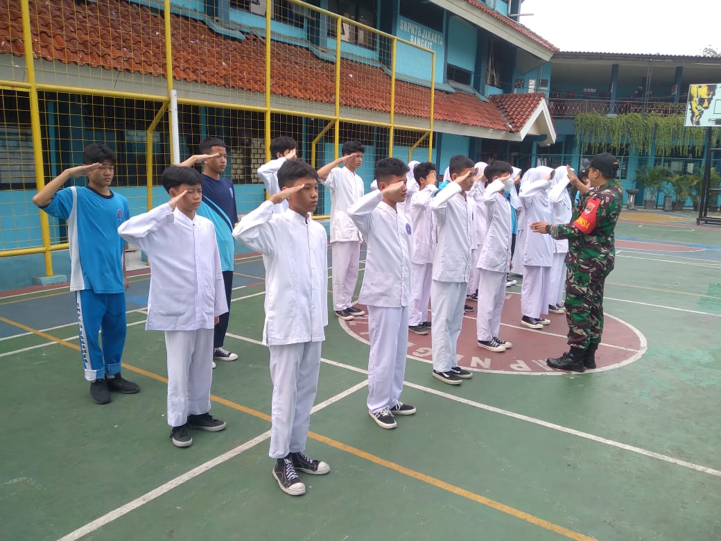 KeizalinNews.com Johar Baru — Babinsa Koramil 08/JB Kodim 0501/JP Serda Nurcahyo memberikan bimbingan kepada siswa SMPN 76 Jakarta di Jl. Percetakan Negara II No. 2 RT. 20 RW. 7, Kecamatan Johar Baru, Jakarta Pusat. Senin (31/7/2023).