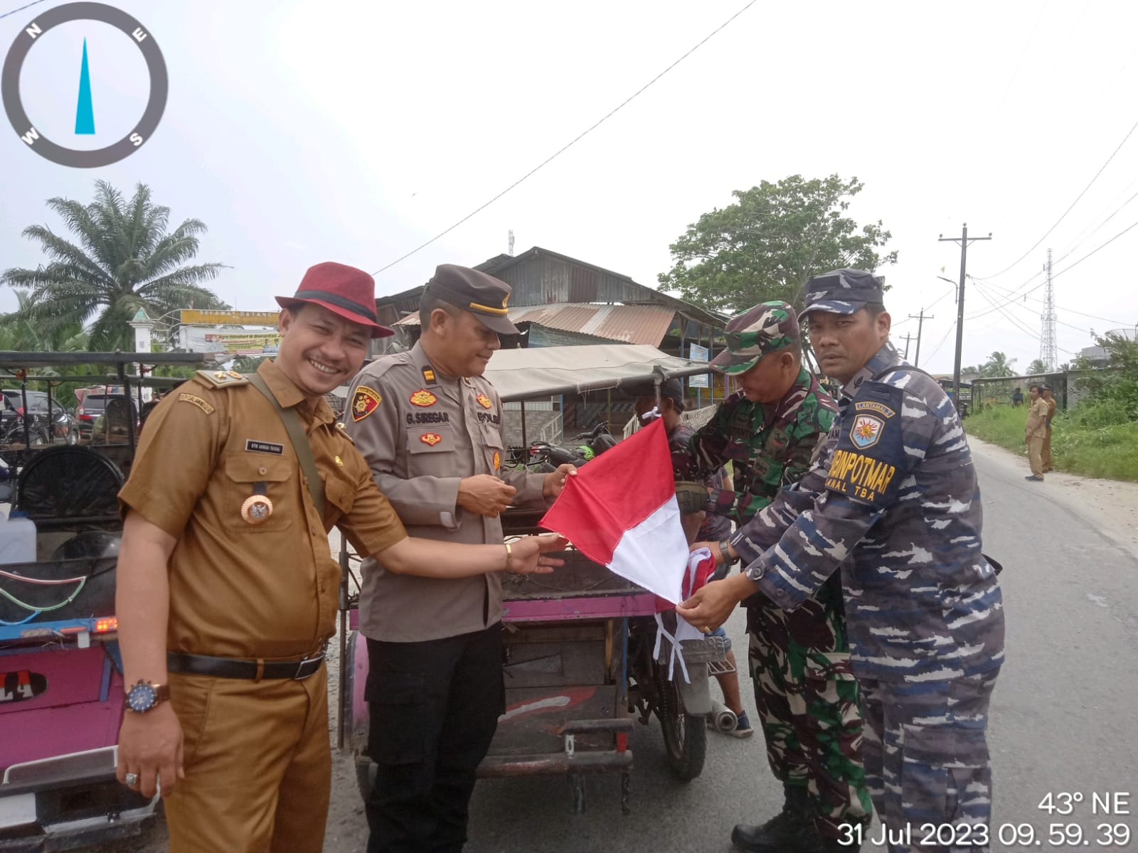 KeizalinNews.com Tanjung Balai — Pangkalan TNI Angkatan Laut Tanjung Balai Asahan melalui Babinpotmar membagikan dan memasang Bendera Merah Putih kepada masyarakat dan sekolah di jajaran Posal Lanal TBA, Selasa (01/8/2023).
