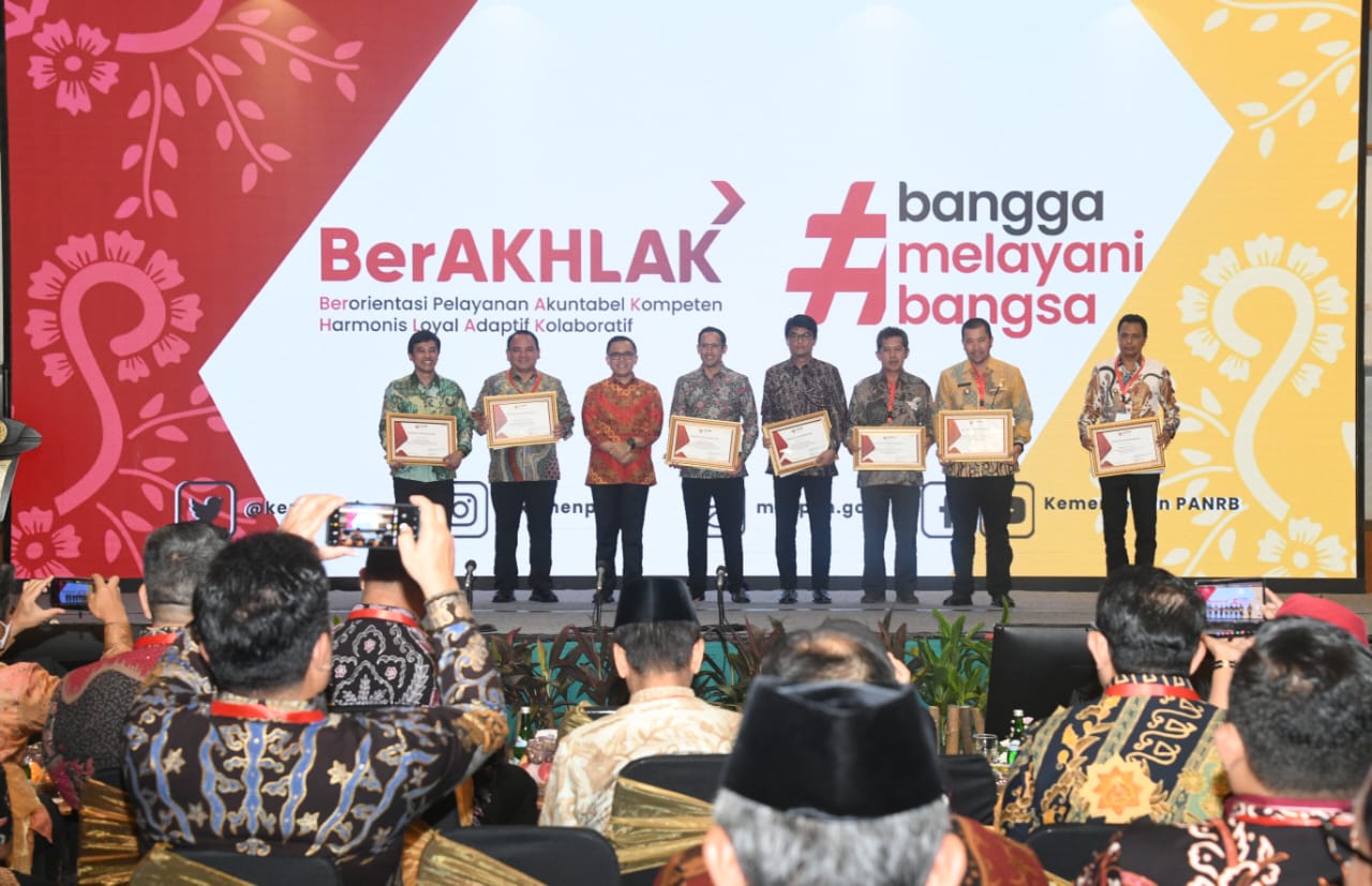 Penghargaan diberikan oleh Menteri PAN RB, Abdullah Azwar Anas kepada Sekretaris Jenderal Kemenkumham, Komjen Pol. Andap Budhi Revianto dalam Rapat Koordinasi Pengadaan ASN tahun 2023, Kamis (03/08/2023) di Jakarta.