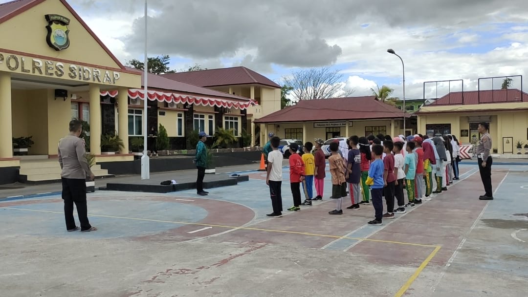 KeizalinNews.Com, SIDRAP (Sulsel) — Satuan Lalu Lintas (Satlantas) Polres Sidrap Polda Sulsel gelar kegiatan latihan peraturan Baris Berbaris (PBB) kepada sejumlah Anak-anak Sekolah Dasar (SD). Sabtu (05/08/23) Pagi.