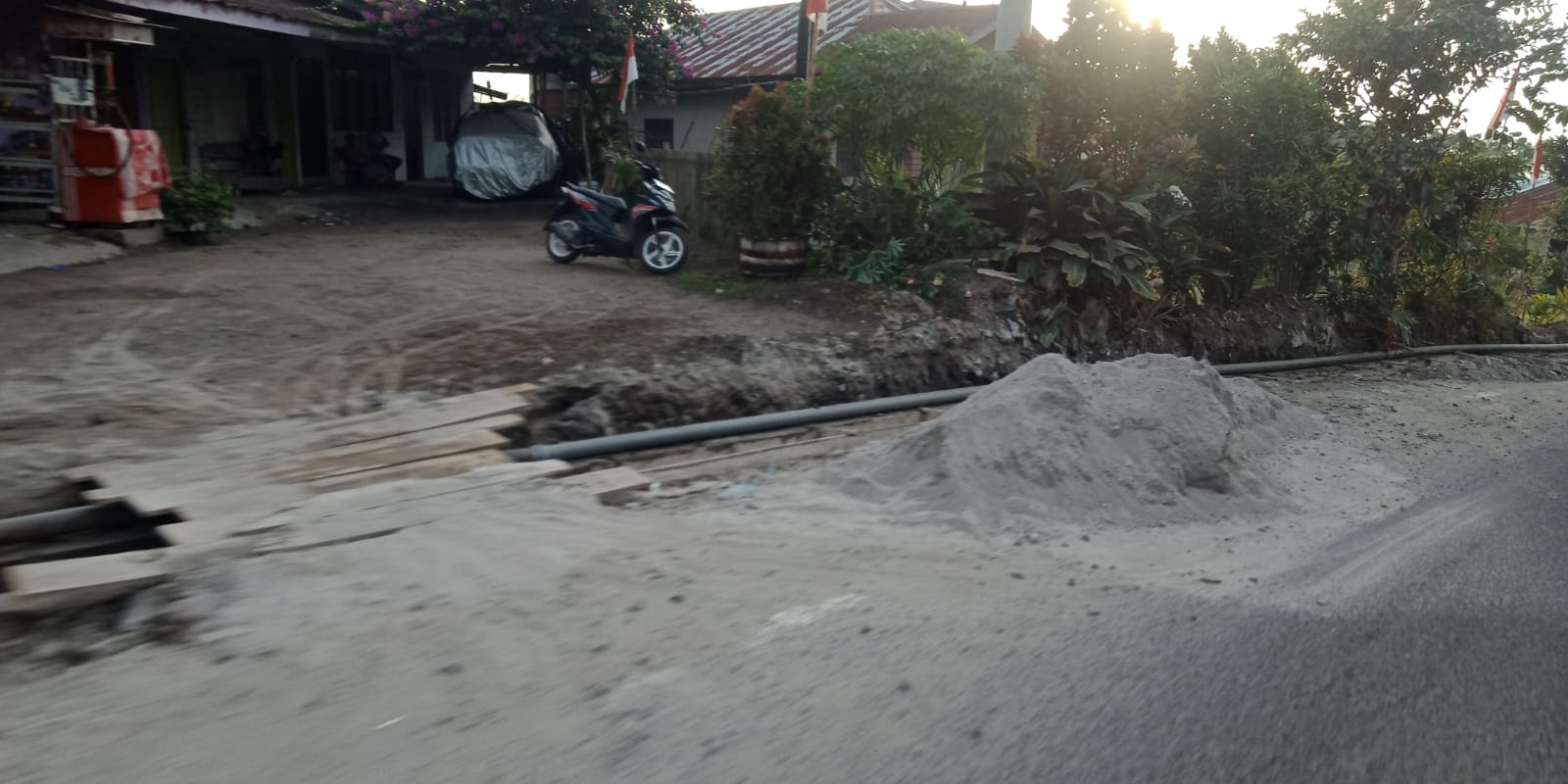 Pada tahap pengerjaan proyek drainase/parit tersebut, tampak terlihat material batu, pasir di tumpuk di badan jalan, yang dapat mengganggu akses bagi pengendara yang melintas khususnya pada malam hari. Kemudian kondisi jalan itu terdapat beberapa tikungan tajam.