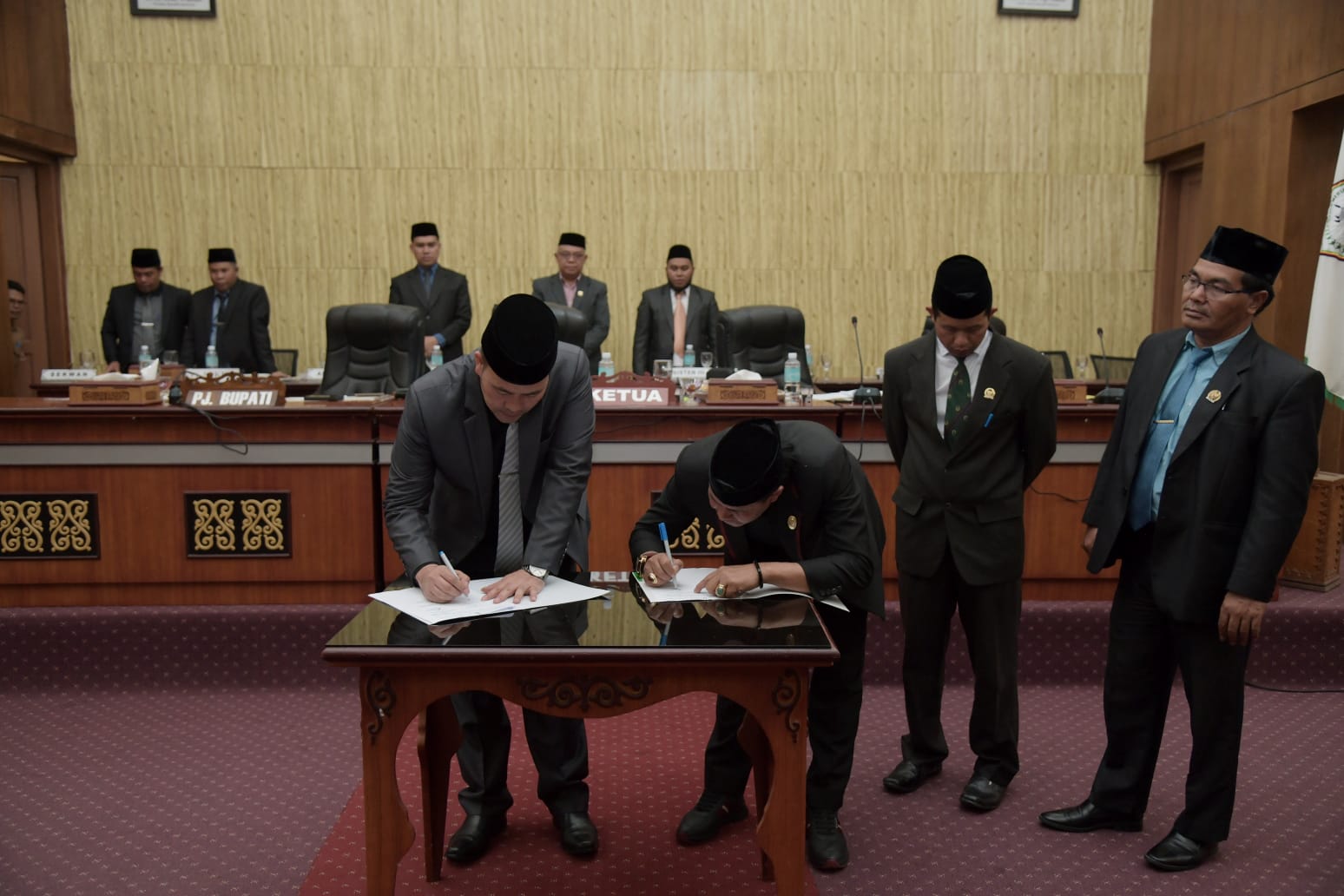 Penandatanganan nota kesepakatan terhadap KUA-PPAS APBK Tahun Anggaran 2024 dilakukan langsung oleh Ketua DPRK Bener Meriah Mhd. Saleh dan Pj Bupati Bener Meriah, Drs. Haili Yoga, M.Si serta disaksikan oleh seluruh anggota dewan serta pimpinan OPD di lingkungan Pemkab setempat.