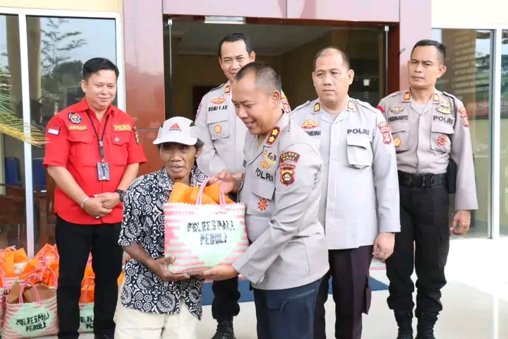 Menjelang HUT RI Ke 78 Kapolres PALI Peduli Terhadap Warga Kurang Mampu Bagikan Bansos