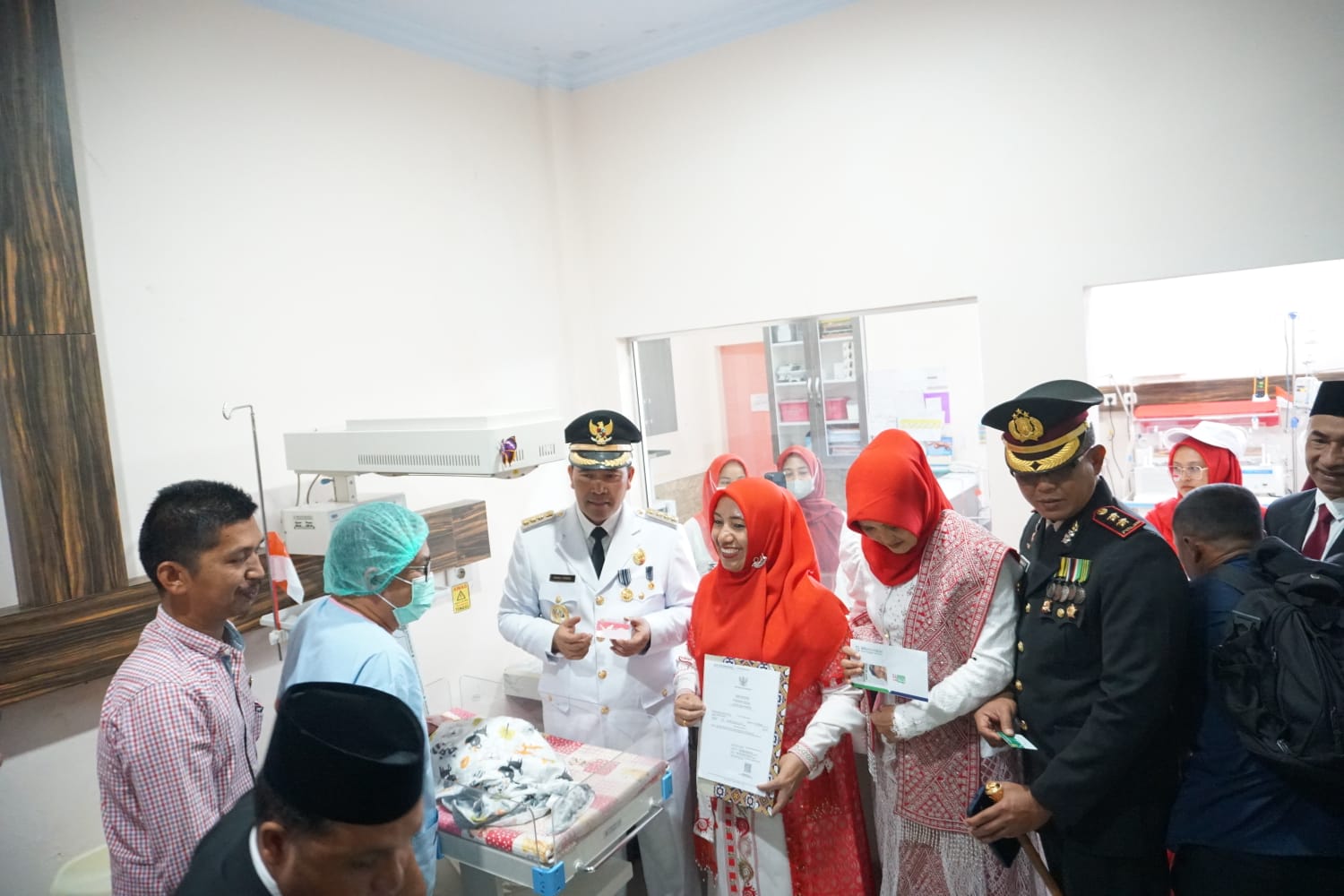 Dua orang bayi yang lahir pada Kamis (17/8/2023) di Rumah Sakit Ibu dan Anak (RSIA) Azalia, di Kampung Tingkem Benyer, Kecamatan Bukit, disambangi oleh Pj Bupati Haili Yoga untuk menyerahkan dokumen kependudukan berupa akta kelahiran.