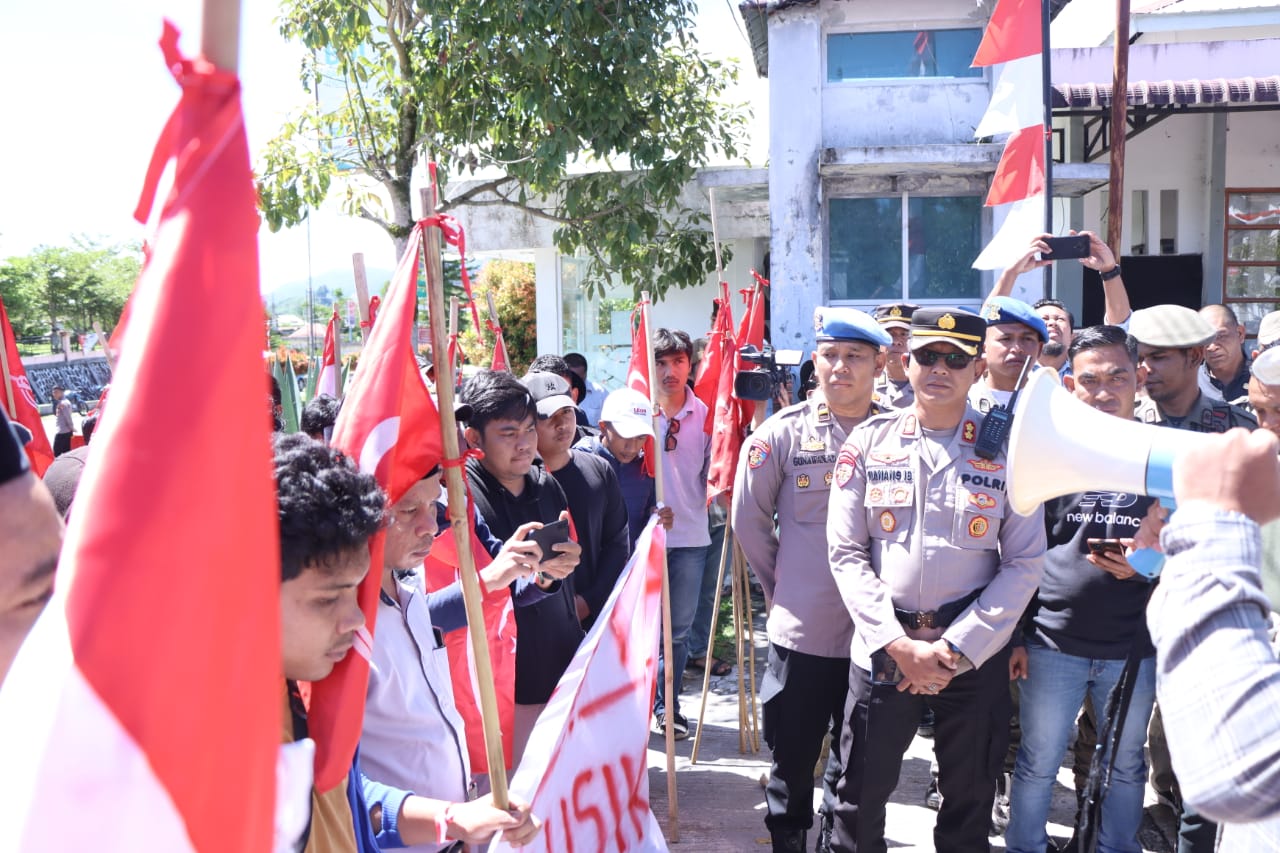 Keizalinnews.com|REDELONG”.– Sebanyak 200 personel Polres Bener Meriah, di bantu oleh personel Brimob, TNI, satpol PP dan dinas perhubungan kabupaten Bener Meriah, mengamankan jalannya aksi damai yang di gelar oleh aliansi masyarakat Gayo di Kantor Bupati Bener Meriah.