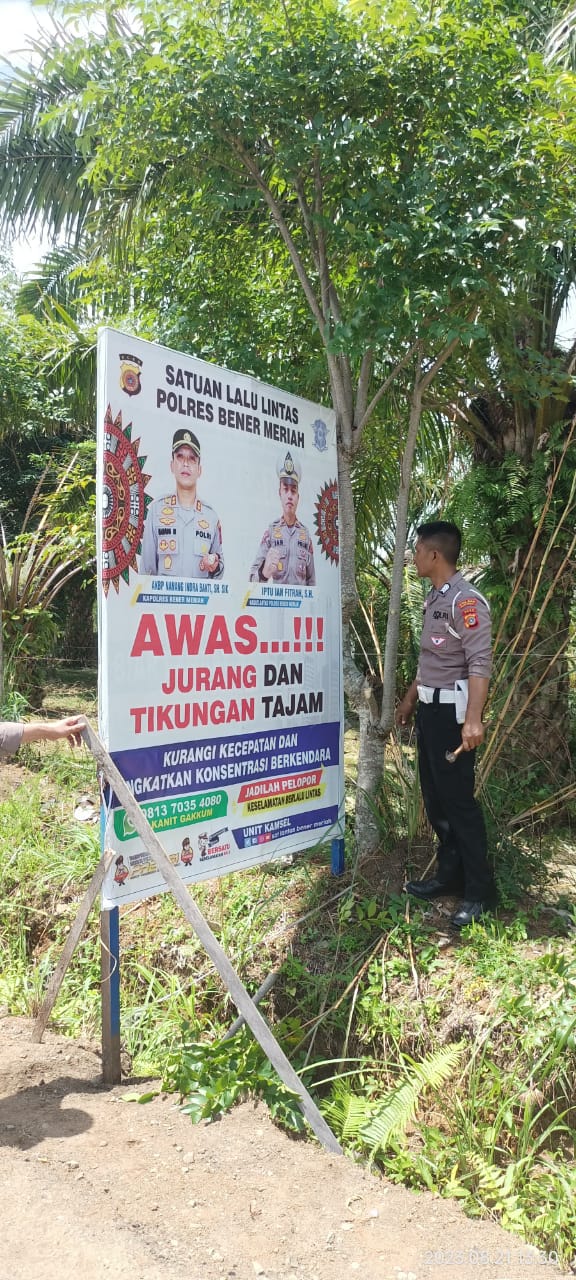 Keizalinnews.com|Redelong”. – Sat Lantas Polres Bener Meriah melaksanakan pemasangan Spanduk himbauan kepada pengguna jalan di Jln. Takengon – Bireun Km 35, 37, dan 38, Kabupaten Bener Meriah, Senin (21/8/2023)
