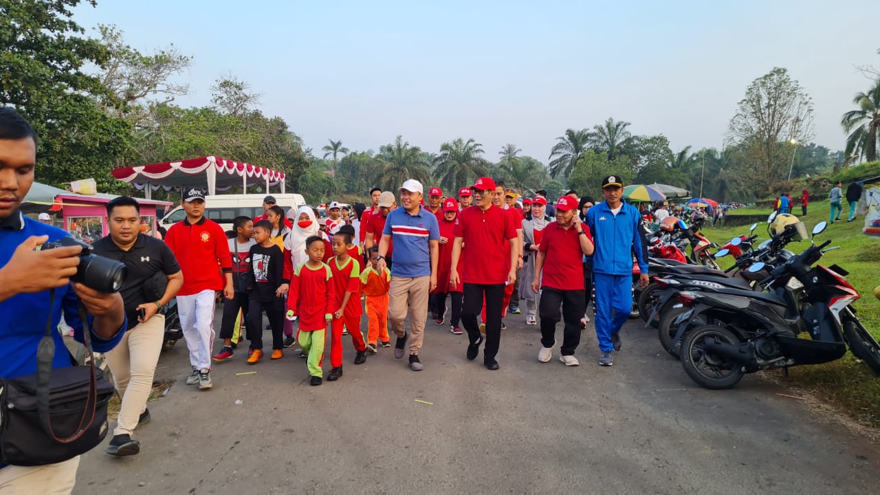 “Jalan santai kemudian dilanjutkan senam sehat ini merupakan ajakan kepada masyarakat untuk rajin berolahraga agar badan tetap sehat dan bugar,” ujar Bupati Heri Amalindo