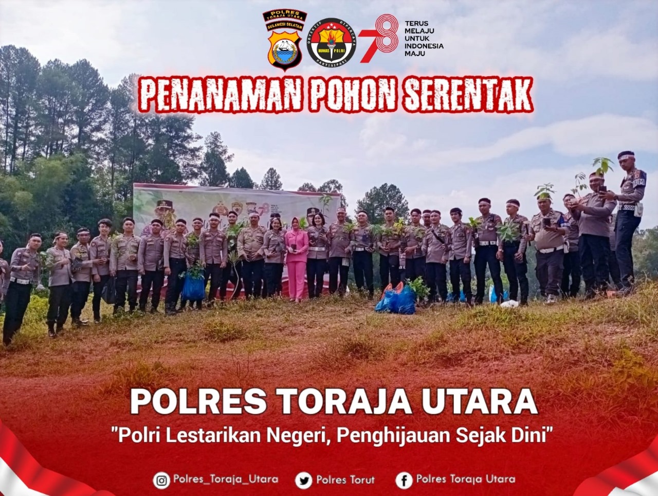 Dalam sambutannya Kapolres Toraja Utara AKBP Zulanda, S.IK.,M.Si mengatakan Kami bersama tiga pilar Kabupaten Toraja Utara menggelar penamaan pohon dalam rangka memperingati Hari Kemerdekaan RI ke 78 yang dilakukan serentak oleh seluruh jajaran Kepolisian.