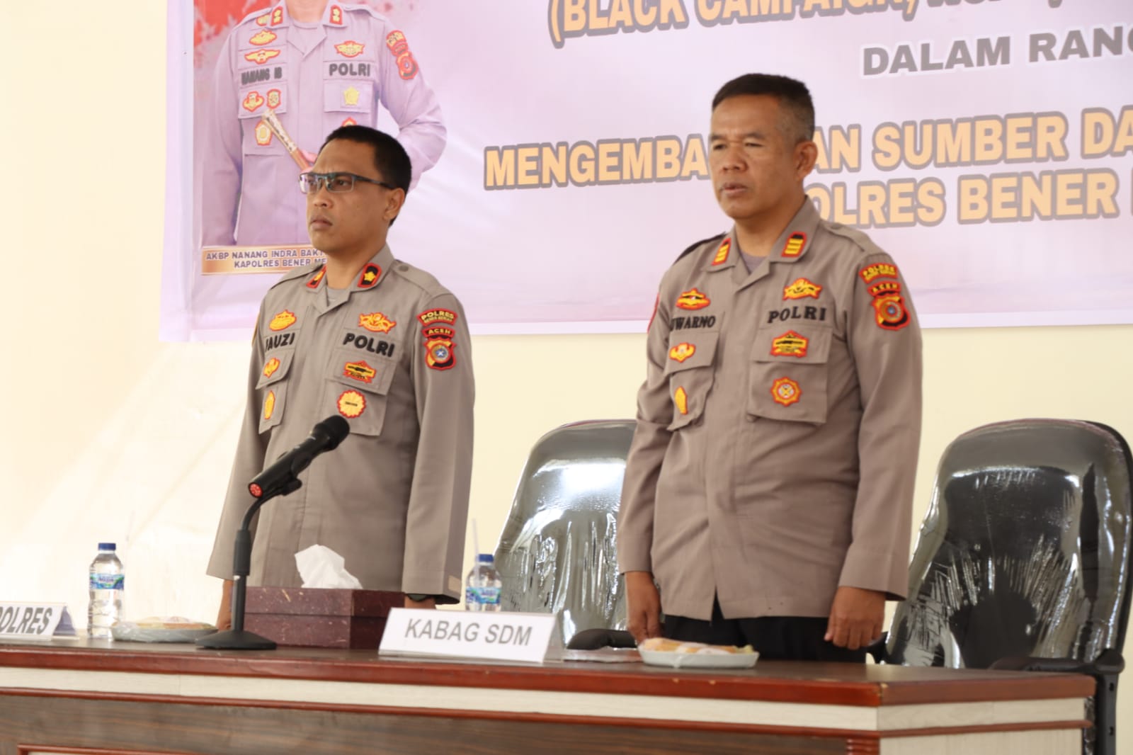 Kapolres Bener Meriah AKBP Nanang Indra Bakti, SH, SIK melalui Wakapolres Bener Meriah Kompol Fauzi, SE, SIK Menyampaikan kegiatan pelatihan Bhabinkamtibmas ini Dalam Rangka Mengembangkan Sumber Daya Manusia Unggul Polres Bener Meriah
