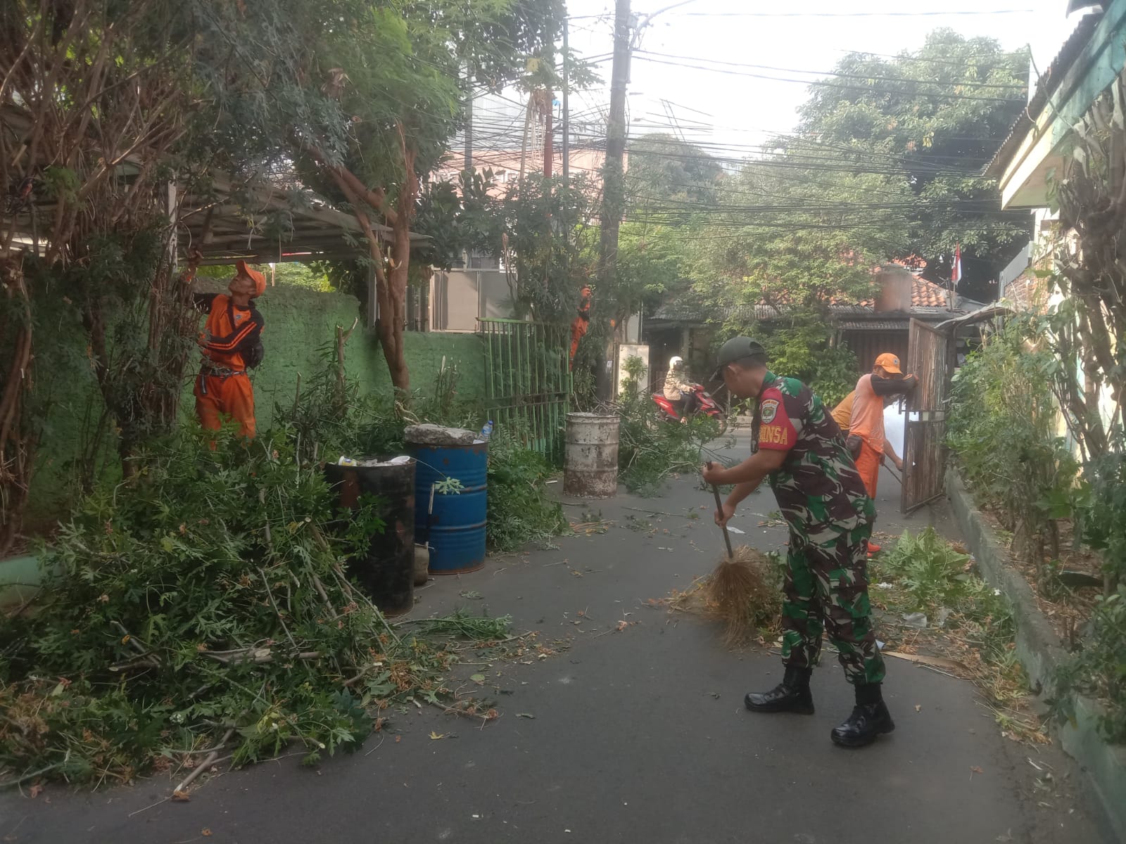 KeizalinNews.com Menteng — Babinsa 01/Menteng Kodim 0501/JP, Serda Gogot Catur Saputro melaksanakan kerja bakti bersama PPSU serta warga binaan bertempat di RT 6, 7, 8 , 9 RW 10 , Jl. Gang Tembok Kelurahan Kebon Sirih Kecamatan Menteng, Jakarta Pusat. Minggu (27/8/2023).