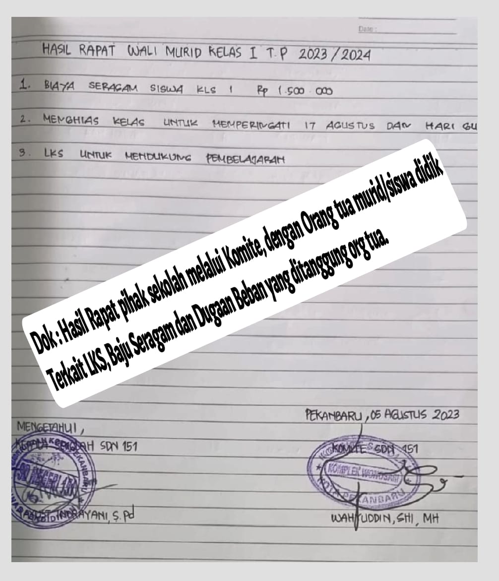 Diduga Mencekik Orang Tua Didik, Pengadaan Pakaian Seragam di SD Negeri 151 Pekanbaru Patut Dipertanyakan?