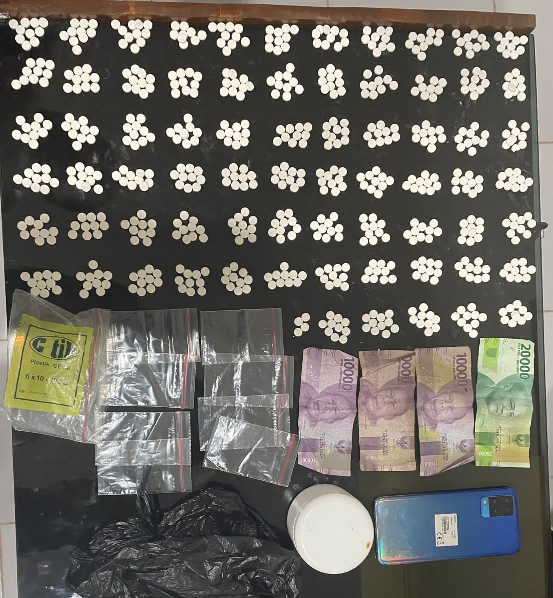 Adapun sejumlah barang bukti yang berhasil diamankan yaitu 1684 butir obat THD, 1 buah pot handbody, 1 buah tas selempang kecil, puluhan sachet plastik klip bening kosong, 2 unit handphone, 2 kantong plastik kresek warna hitam, serta uang tunai sebesar 50ribu rupiah, jelasnya.
