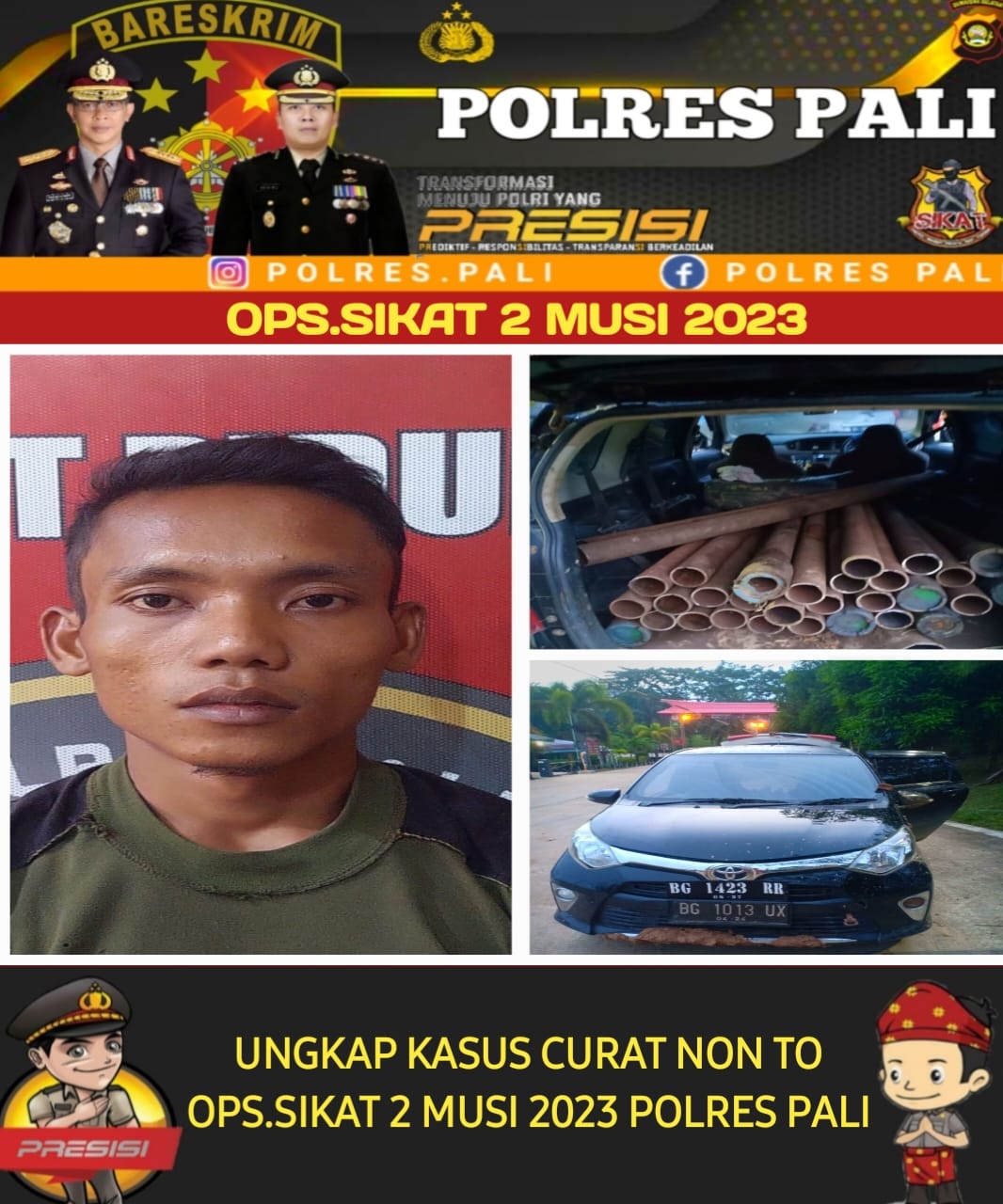 Kapolres PALI AKBP Khairu Nasrudin, S.I.K, M.H, melalui Kasat Reskrim Polres PALI IPTU Yudhistira, S. Tr. K, S.I.K, didampingi Kanit Pidum IPDA M. Yusuf Aprian, S.Tr.K, membenarkan penangkapan terhadap terduga pelaku atas kasus dugaan tindak pidana pencurian dengan pemberatan itu.