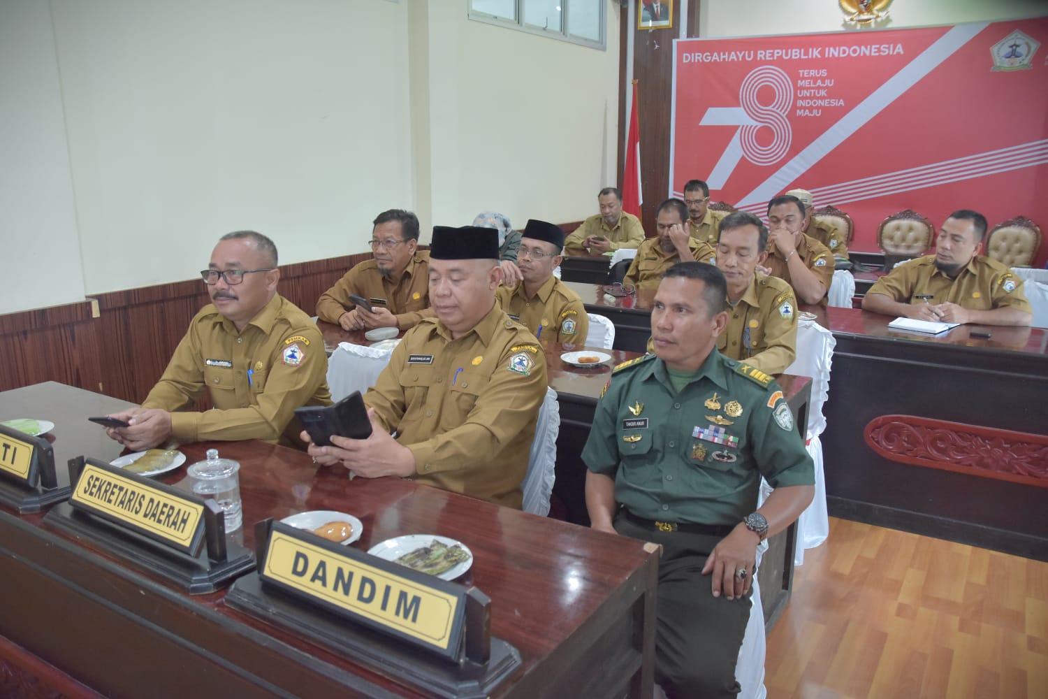 Rakor virtual itu, diikuti oleh Asisten Perekonomian dan Pembangunan, Setdakab Bener Meriah, Sayutiman, SE., MM yang dipusatkan di Oproom setdakab setempat. Selain itu, beberapa pejabat setempat seperti Kabag Ekonomi Setdakab, perwakilan Dandim 0119/Bener Meriah, Kadis Perdagangan, Kadis Pertanian, Kadis PU dan sejumlah OPD terkait juga ikut menghadiri Rakor tersebut.