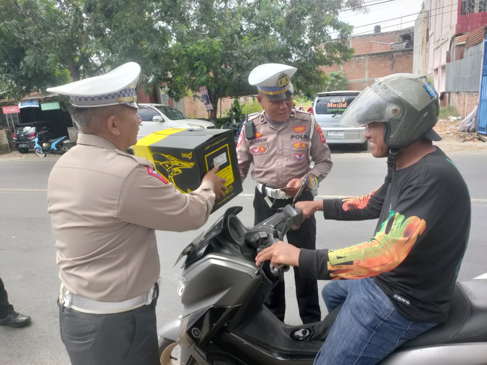 “Kegiatan pembagian helm ini sebagai wujud kepedulian Polri kepada masyarakat akan keselamatan berlalu lintas dengan harapan masyarakat semakin sadar akan pentingnya keselamatan berlalu lintas dan etika berkendara yang baik,” harapnya.