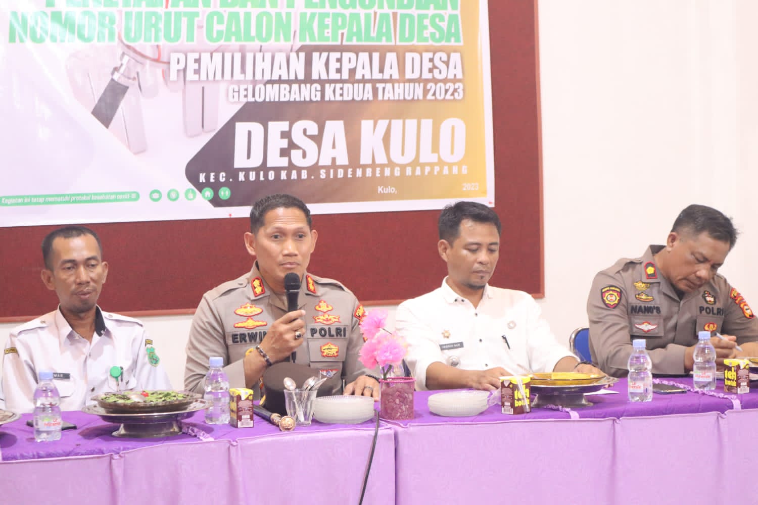 “Kami hadir di tengah-tengah kita pada kesempatan ini untuk berkomitmen bersama agar situasi Kamtibmas tetap kondusif selama tahapan pemilihan kepala desa”, Ujar Kapolres Sidrap.
