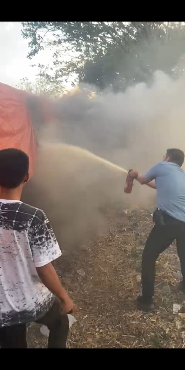 “Melihat ada kobaran api dari bawah mobil truk, saya kemudian mengambil apar (Apat pemadam Api Ringan) yang ada di mobil saya dan juga masyarakat membantu mengambil air untuk memadamkan kobaran api yang sudah mulai membesar”, Ujar Kasat Intelkam.