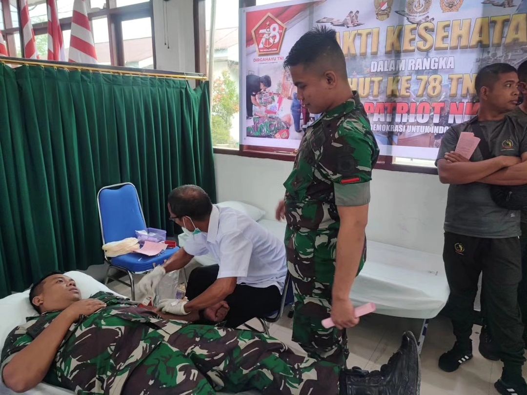 Kegiatan Donor darah serentak dalam rangka HUT TNI ke-78 yang terpusat di aula Lanal Timika yang diikuti satuan TNI Polri wilayah Timika diikuti dengan antusias oleh para prajurit Iyako Brigif Raider 20 Kostrad.