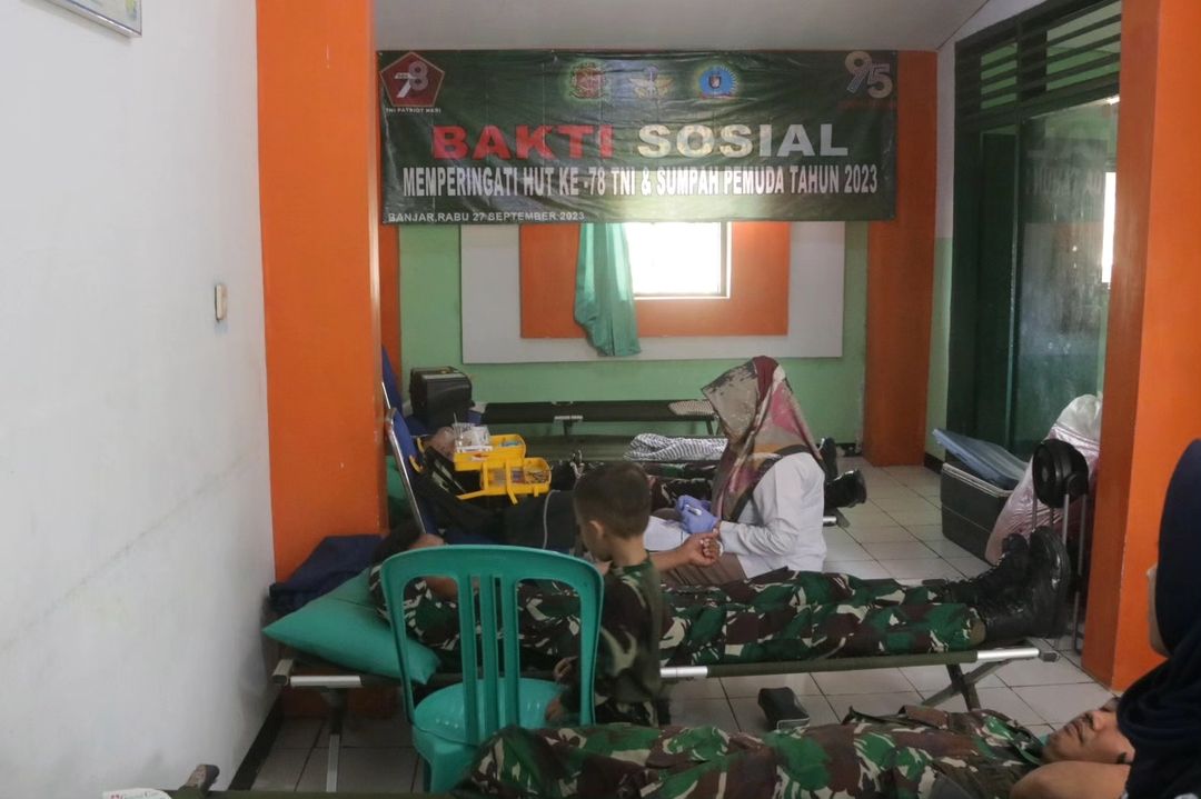 KeizalinNews.com Kota Banjar — Dalam rangka menyambut HUT ke-78 TNI dan Sumpah Pemuda Tahun 2023, Yonif 323/Buaya Putih selenggarakan kegiatan Bakti Sosial dan Donor Darah bertempat di Klinik Rumah Bersalin Yonif 323/Buaya Putih, Kota Banjar, Jawa Barat. Rabu (27/09/2023).
