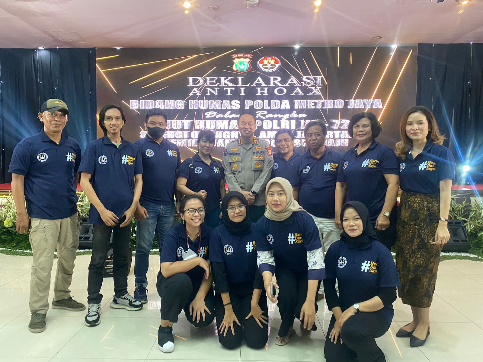 KeizalinNews.com Bekasi — Dalam rangka DEKLARASI ANTI HOAX BIDANG HUMAS POLDA METRO JAYA dalam rangka HUT HUMAS POLRI KE 72, Kasie Humas Polres Metro Bekasi Kota Kompol Erna Ruswing Andari dan Penggiat Sosial dan Media turut hadir di Gedung BPMJ Polda Metro Jaya, Selasa (10/10/2023) mulai pukul 08.00.wib.