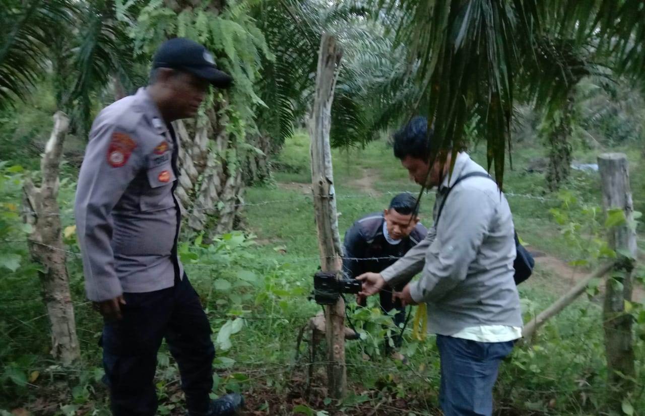 Anggota Polsek Banda Alam Polres Aceh Timur Dampingi Petugas Pasang Kamera Trap di Lokasi Sapi yang Dimangsa Harimau.