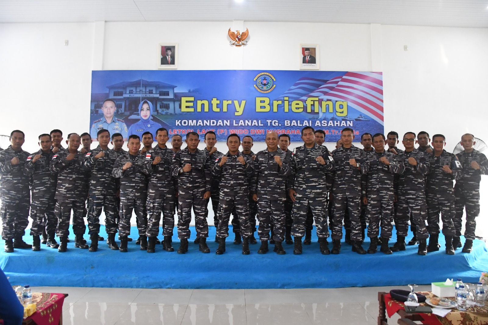 KeizalinNews.com Tanjung Balai — Mengawali kedinasan sebagai Komandan Pangkalan TNI Angkatan Laut Tanjung Balai Asahan, Letkol Laut (P) Wido Dwi Nugraha, S.E., M.Tr. Opsla., melaksanakan Entry Briefing kepada Prajurit dan Pegawai Negeri Sipil (PNS) Lanal Tanjung Balai Asahan serta Jalasenastri Cabang 7 Korcab I DJA I, bertempat di Gedung Serbaguna Mako Lanal Tanjung Balai Asahan, Jalan Tanjung Berombang, Asahan Mati, Kecamatan Tanjung Balai, Kabupaten Asahan, Jumat (20/10/2023).