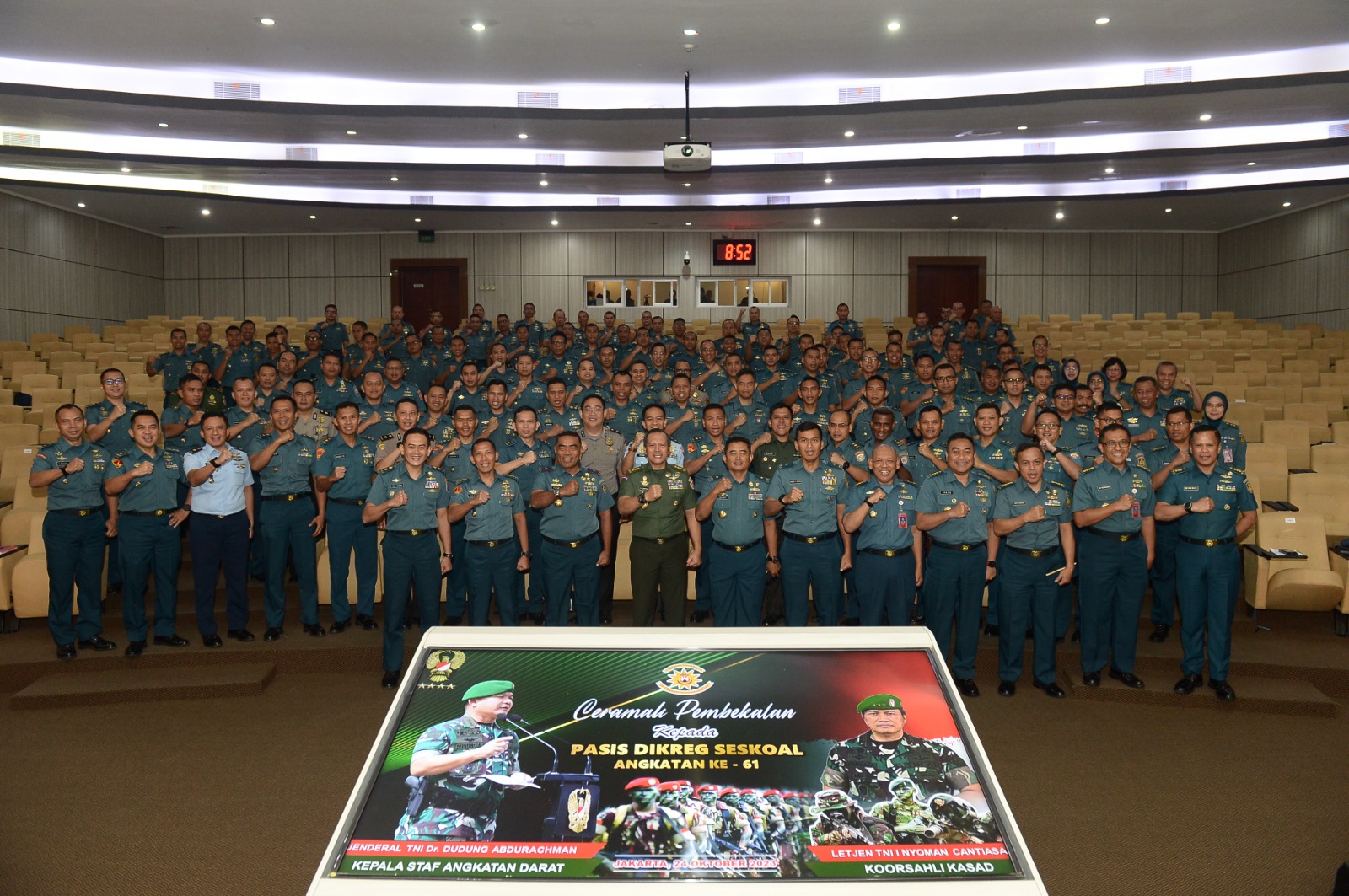 Dalam kesempatan tersebut, Koorsahli Kasad hadir dalam rangka mewakili Kepala Staf Angkatan Darat, Jenderal TNI Dr. H. Dudung Abdurachman, S.E., M.M. untuk memberikan pembekalan kepada Pasis Dikreg Seskoal yang sesaat lagi akan menyelesaikan masa pendidikannya.