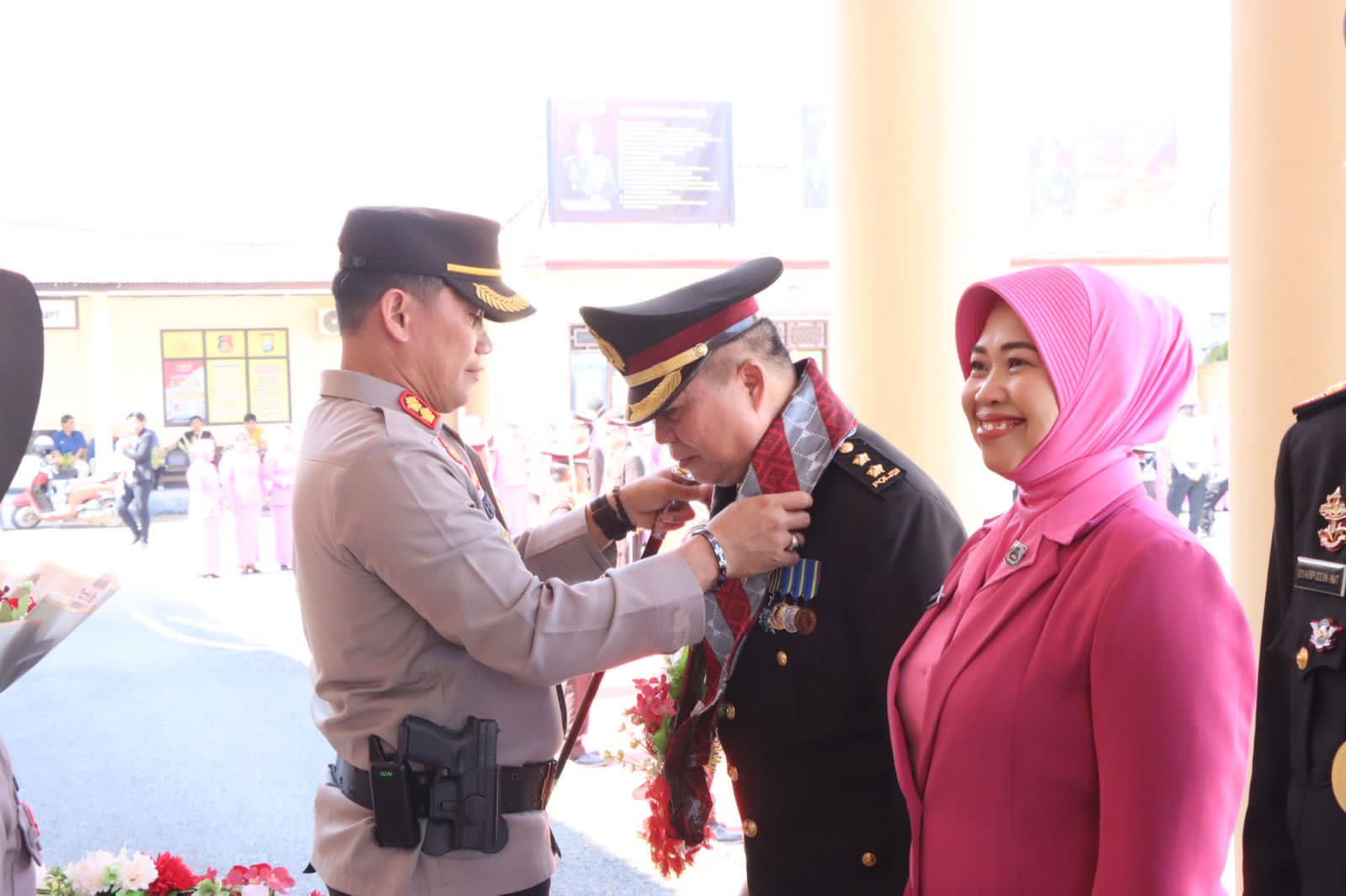 KeizalinNews.Com, SIDRAP (Sulsel) — Kapolres Sidrap AKBP Erwin Syah,SIK.,MH didampingi oleh Ketua Bhayangkari Ny Siska Erwin Syah pimpin upacara wisuda purna bakti dengan pedang pora di Halaman Mapolres Sidrap, Jalan Bau Massepe No. 1, Kel. Pangkajene, Kab. Sidrap. Senin (6/11/2023).