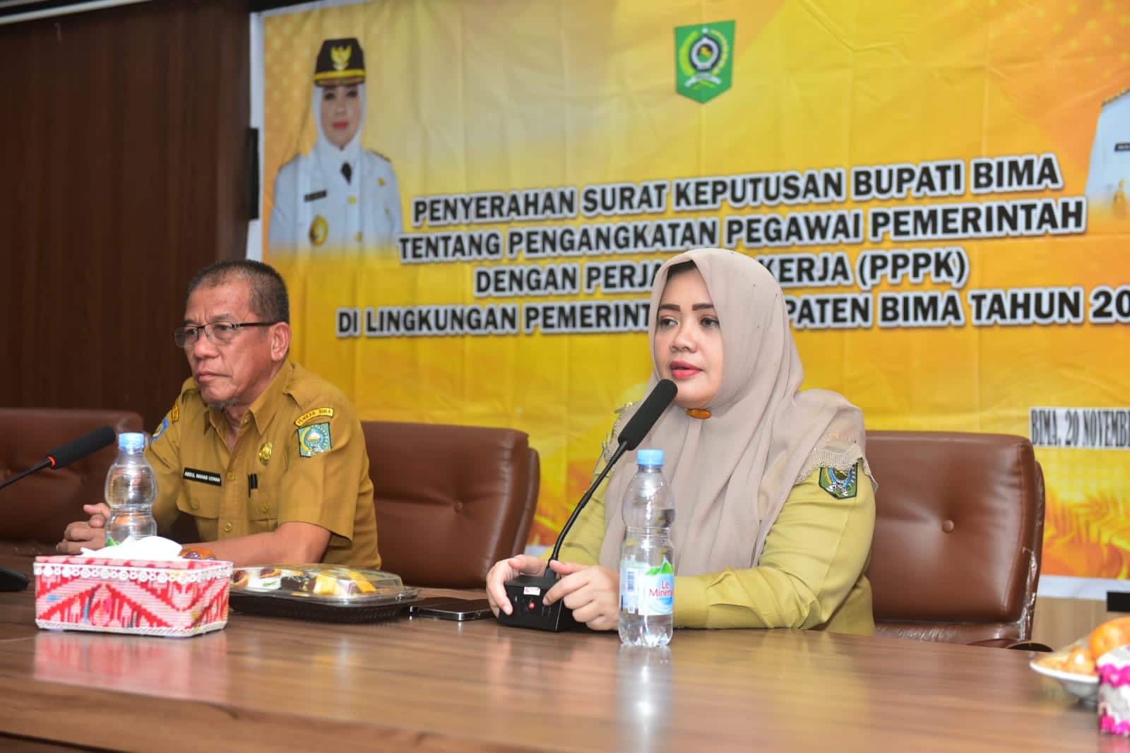 Bupati Bima yang didampingi dua orang Staf Ahli Bupati Iwan Setiawan SE, Staf dan Saifullah ST, Asisten I Setda Fatahullah S.Pd, Asisten III Drs. H.Arifudin, Kepala BKD dan Diklat H.Abdul Wahab Usman SH.,M.Si dan Kabag Organisasi Raani Wahyuni, ST.,MT,. M.Sc meminta ASN PPPK yang baru saja menerima SK agar terus meningkatkan disiplin dalam bekerja.