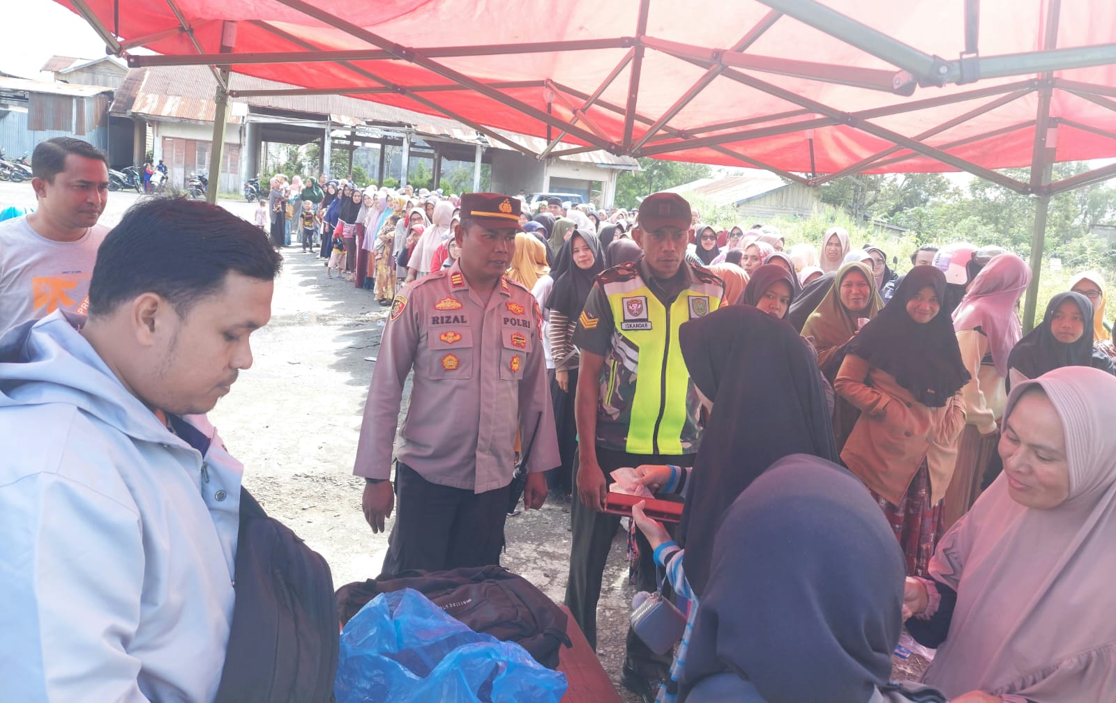 Keizalinnews.com|Bener Meriah”._Personel Polsek Bandar yang di pimpin langsung oleh Kapolsek Bandar AKP Jufrizal, S.H., M.H, melaksanakan pengamanan pasar murah khusus beras yang di oleh dinas perdagangan Kabupaten Bener Meriah di Kecamatan Bandar, Rabu (22/11/23).