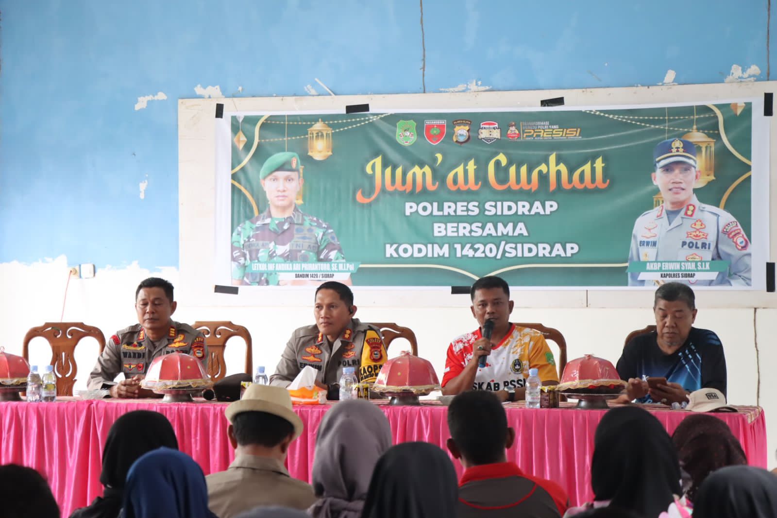Sementara itu, Kapolres Sidrap AKBP Erwin Syah,S.I.K,.MH pada kesempatan tersebut menyampaikan bahwa, program Jumat Curhat ini merupakan program nasional yang bertujuan untuk mengetahui keresahan atau informasi yang terjadi di masyarakat secara langsung.