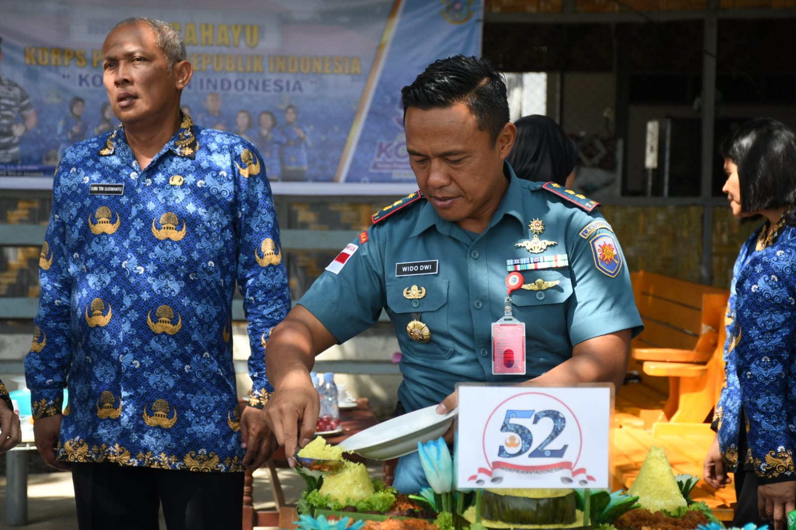 KeizalinNews.com Tanjung Balai — Lanal Tanjung Balai Asahan gelar syukuran HUT KORPRI Ke-52 Tahun 2023 dengan tema “Korprikan Indonesia” ditandai dengan pemotongan tumpeng oleh Komandan Lanal Tanjung Balai Asahan Letkol Laut (P) Wido Dwi Nugraha, S.E., M.Tr. Opsla., bertempat di Lapangan Tembak Pistol Ksatria Jala Bhakti, Jalan Tanjung Berombang, Asahan Mati, Kabupaten Asahan, Rabu (29/11/2023).