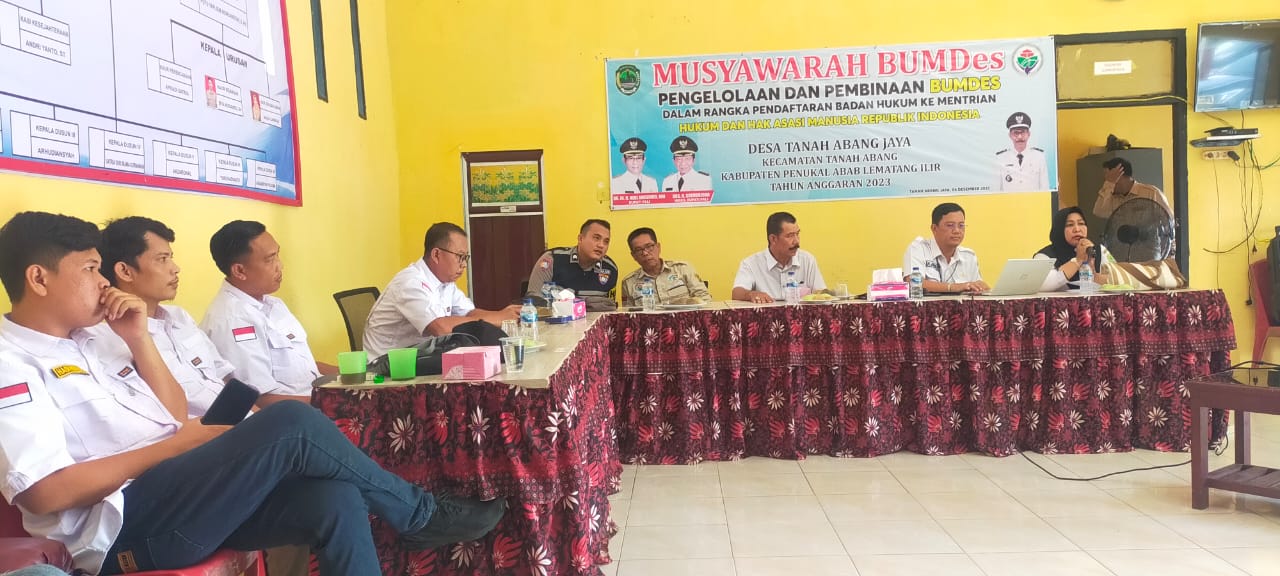 Kapolres PALI AKBP Khairu Nasarudin, S.I.K, M.H, melalui Kapolsek Tanah Abang IPTU Darmawansyah, S.H., M.H. yang diwakili oleh Bhabikamtibmas Briptu M. Jaim Dani S.H. menyampaikan Kegiatan Musyawarah BumDes dalam rangka pendaftaran BumDesa ke Kementrian huk dan hak asasi manusia Republik Indonesia.