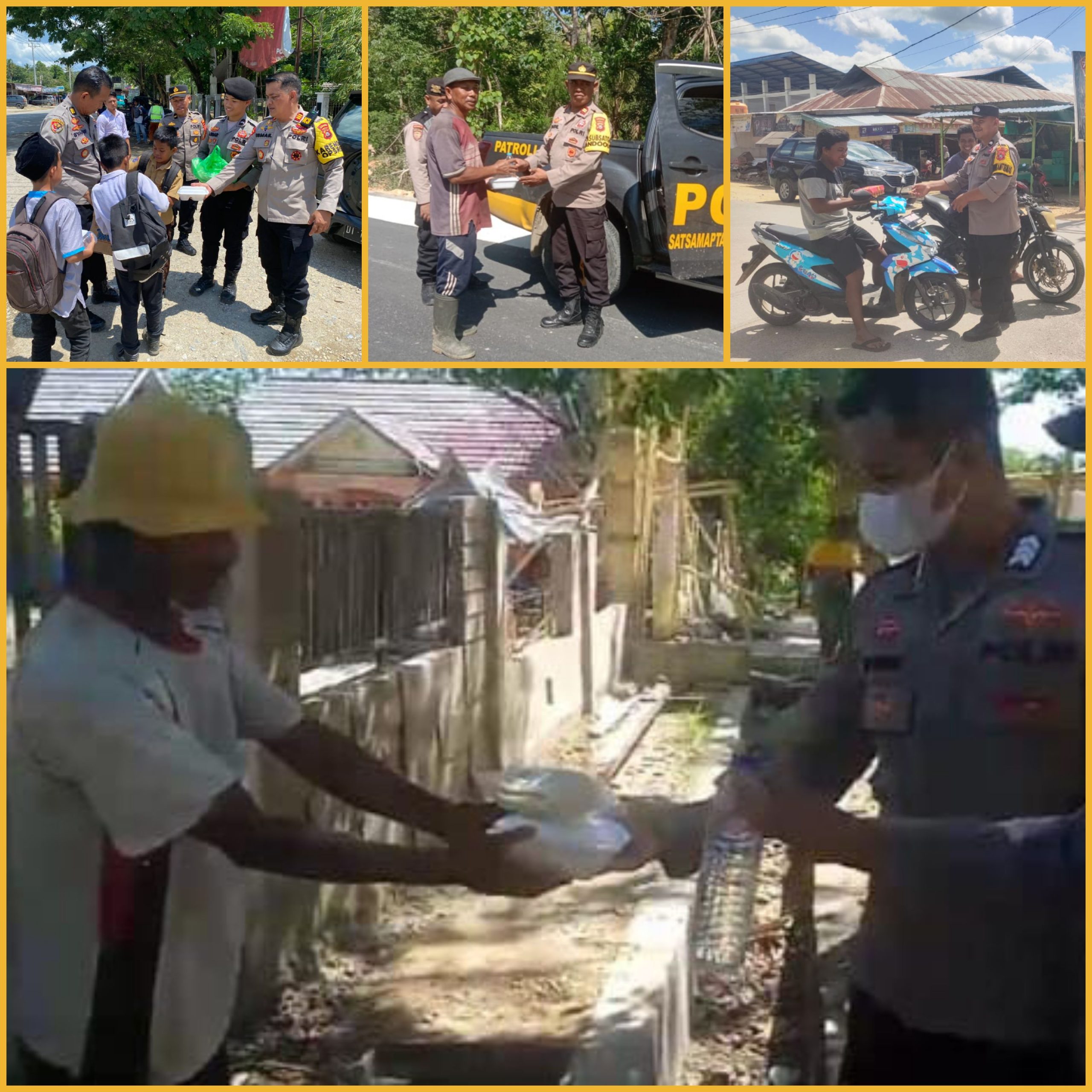 Polres konsel dan polsek atari jaya, polsek andoolo dan polsek buke serentak bagikan makanan kotak ke warga