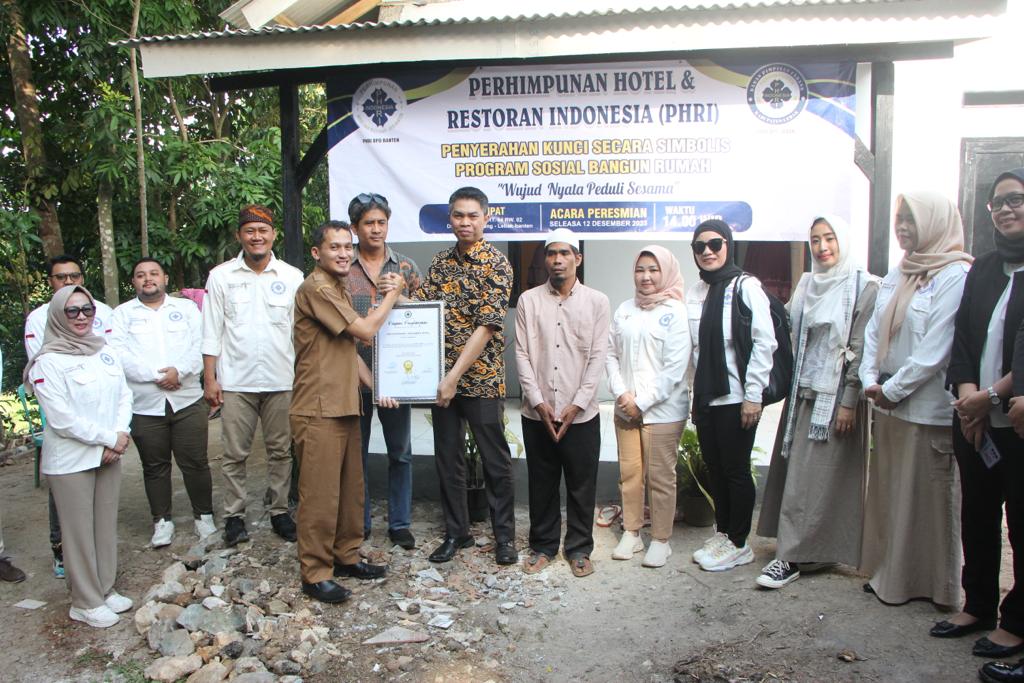 Keizalinnews.com – Rangkasbitung, – Organisasi Perhimpunan Hotel dan Restoran Indonesia (PHRI) resmi menyerahkan hasil bedah rumah kepada pemilik rumah, Bapak Suandi di Desa Warunggunung, Selasa (13/12)