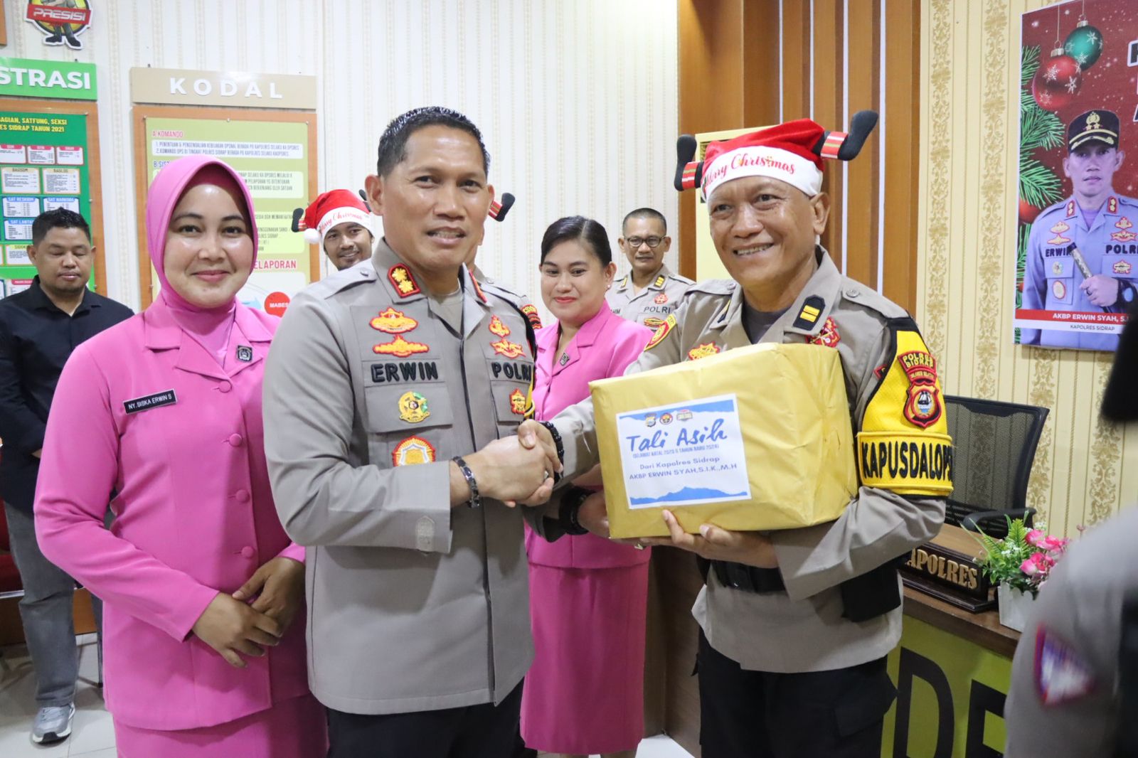 KeizalinNews.Com, SIDRAP (Sulsel) — Bentuk kepedulian terhadap sesama, tali asih berupa bingkisan natal di serahkan Kapolres Sidrap AKBP Erwin Syah. S.I.K.,MH untuk personil Polri dan Anak TK Kemala Bhayangkari yang beragama Nasrani.