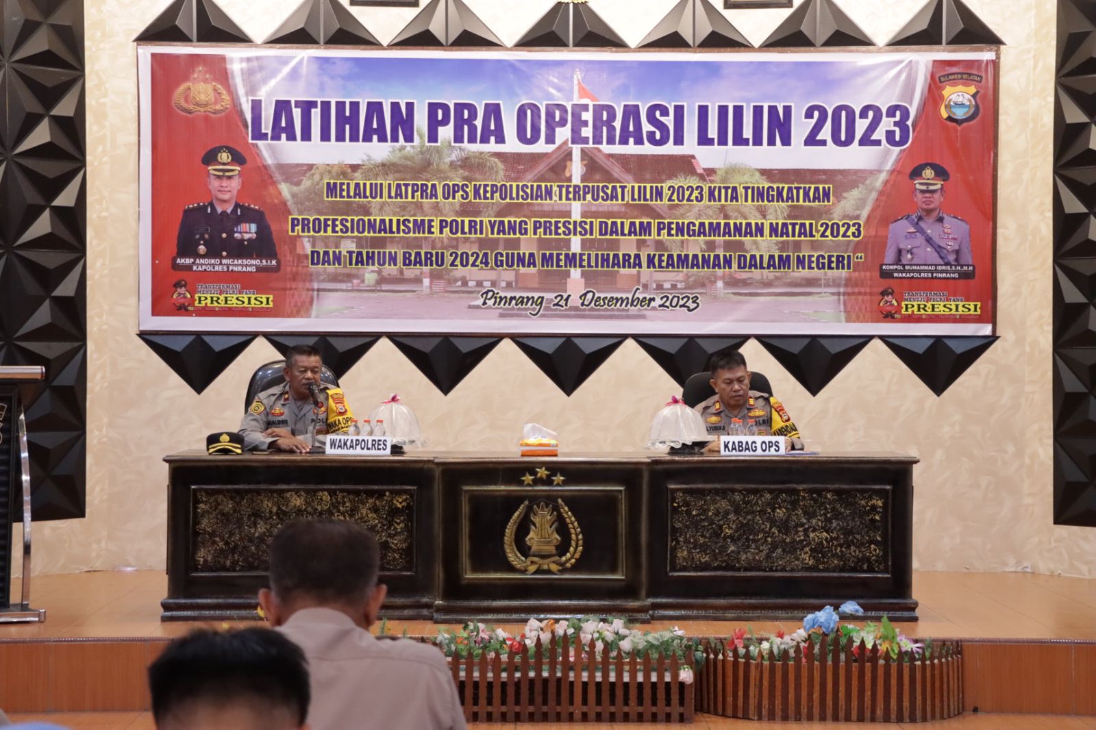 KeizalinNews.Com, Pinrang (Sulsel)- Menjelang Operasi Lilin 2023, Polres Pinrang menggelar latihan Pra Operasi (Lat Pra Ops) di Aula wicaksana laghawa polres pinrang, Kamis (21/12/2023)