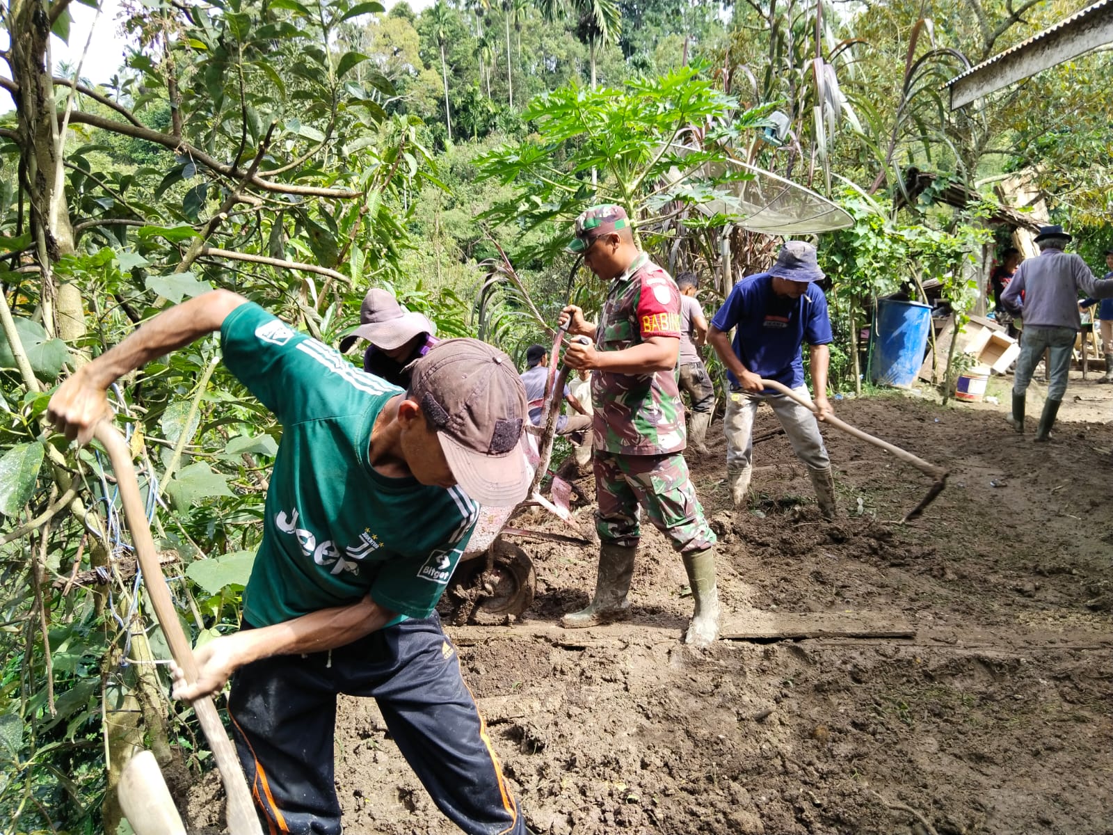 Dandim 0119/BM Letkol Kav Ino Dwi Setyo Darmawan SE.M.Han, melalui Danramil 03/TG Kapten Czi Aep Muhkran Halid saat dikonfirmasi membenarkan” Gotong royong yang dilakukan oleh Babinsa bersama masyarakat bertujuan untuk membersihkan sisa material yang menimbun dapur milik warga Sdri. Iswari, sehingga rumah tersebut dapat dihuni kembali.