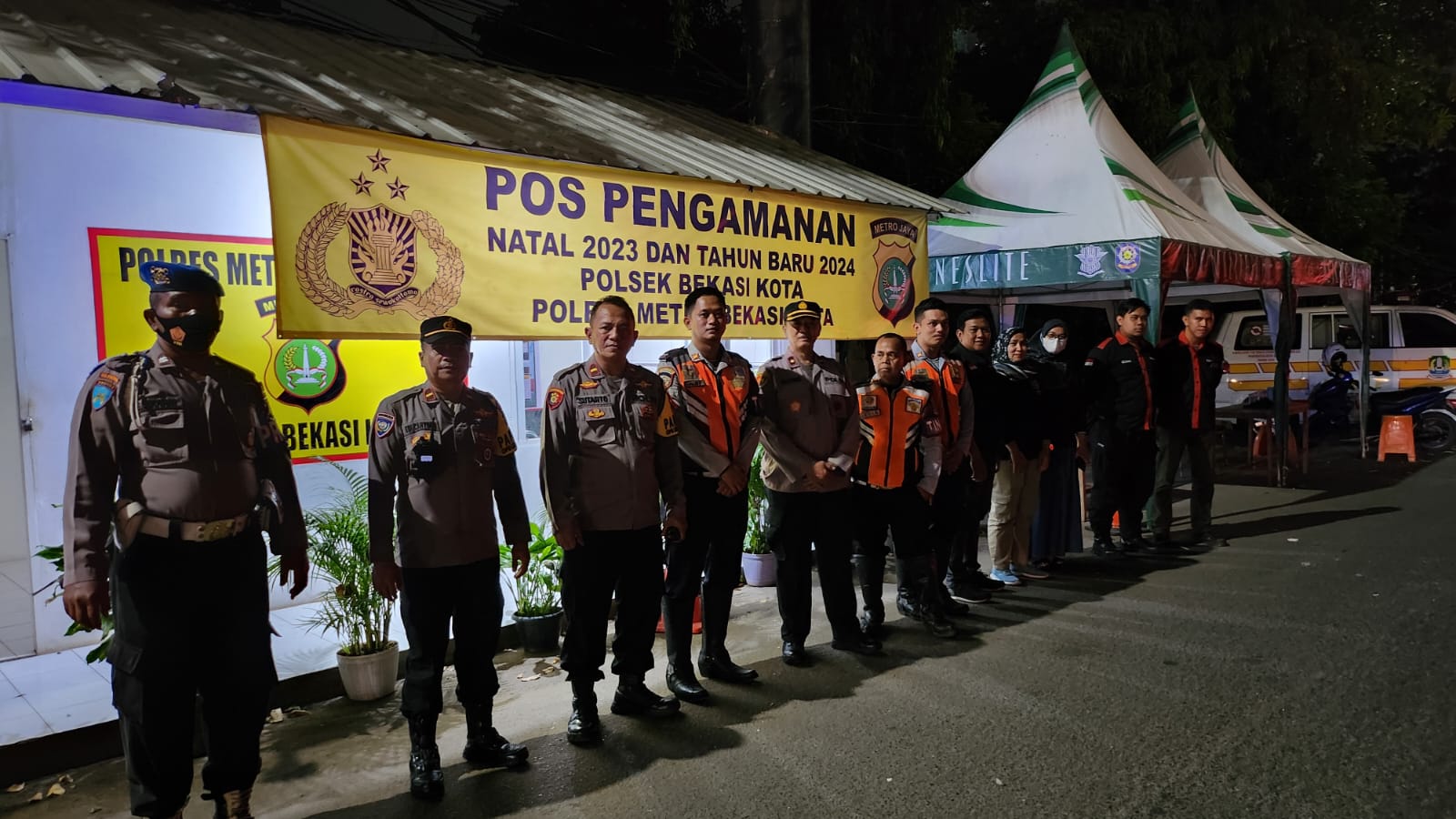 KeizalinNews.com Bekasi — Dalam rangka memastikan kesiapan personil dan prasarana pendukung Pos Pengamanan dan Pos Pelayanan Operasi Lilin Jaya di wilayah Polres Metro Bekasi Kota, Kapolres Metro Bekasi Kota diwakili Ps Kabaglog Kompol Sutrio melakukan kegiatan Asistensi / Supervisi pada Operasi Kepolisian Terpusat “Lilin Jaya-2023” di Pos Pam Sumber Artha Polsek Bekasi Kota, Sabtu (23/12/2023) sekitar pukul 21.00 wib malam.