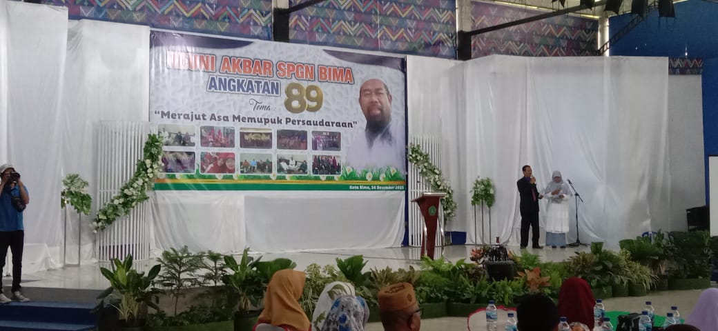 KeizalinNews-comKabupaten Bima. Berkat kekompakan dan kebersamaan serta kerja keras segenap tim panitia di bawah koordinasi  Bapak Suhardin, S.Pd. MM. selaku ketua panitia pelaksana bersama Bapak Abdul Haris, S. Pd. selaku ketua dewan penasehat dan Ico Rahmawati, S.Pd M.Pd selaku ketua IKA SPGN 89 serta seluruh anggota. Ikatan Alumni (IKA) Sekolah Pendidikan Guru Negeri (SPGN) Bima NTB angkatan 89 berhasil menggelar acara reuni Akbar yang di pusatkan di areal Kampus Sekolah Tinggi Ilmu Ekonomi (STIE) Bima pada Minggu (24/12/23) lalu.