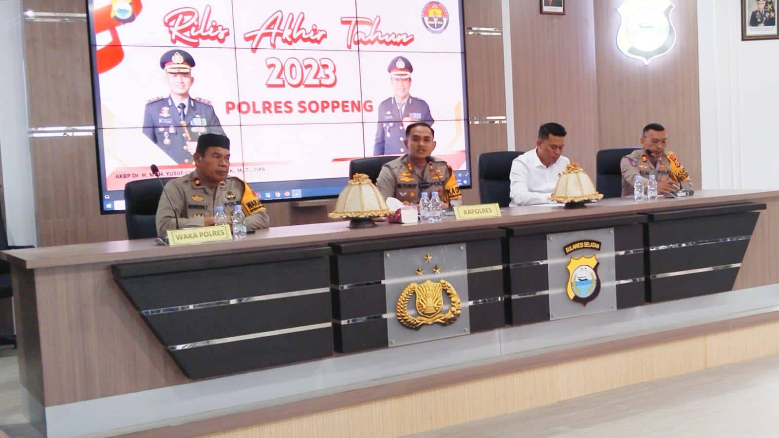KeizalinNews.Com, Soppeng (Sulsel)–Kepolisian Resort (Polres) Soppeng, menggelar press rilis akhir tahun untuk mengevaluasi dan merefleksi kinerja dan capaian sepanjang tahun 2023 di Aula Mapolres Soppeng, Kecamatan Lalabata. Sabtu, (30/12/2023).