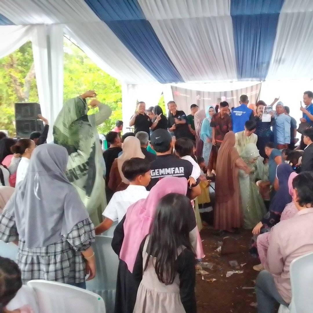 Sambil memainkan hiburan musik dangdut grup cuta nada lagunya artis terpopuler sunda mamah bungsu bandung,Bapak caleg faisal menyawer para pendukung dan penonton yang ada di acara pernikahan pasangan, Neng Sindi dan Sandi anak dari bapak maman dan ibu tiktik dengan Bapak Dana dan Ibu Endah.
