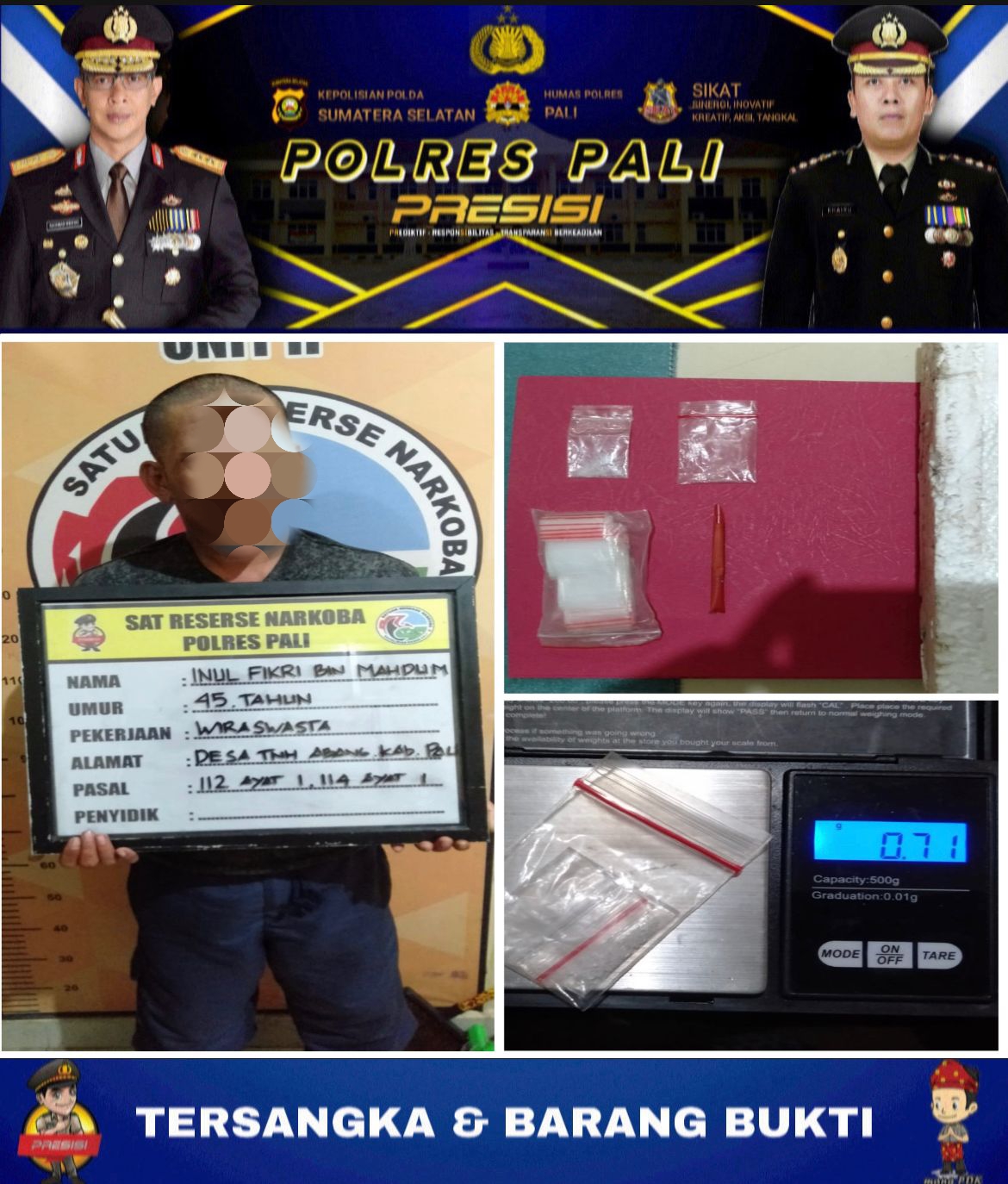 Keizalinnews.com // PALI – Satuan Reserse Narkoba Polres PALI kembali berhasil mengamankan seorang pria yang diduga kuat sebagai pelaku pengedar Narkotika jenis sabu-sabu pada Kamis (18/01/2024) kemarin.