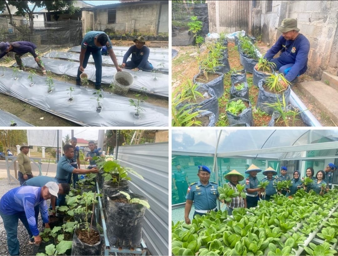 KeizalinNews.com Bintan — Komandan Lanal Bintan Kolonel Laut (P) Gita Muharam, M.Si., beserta Prajurit Lanal Bintan melaksanakan panen hasil berkebun Prajurit Lanal Bintan dalam rangka Program Ketahanan Pangan Lanal Bintan, bertempat di Lahan Kantor Jalasenastri Cabang 5 Korcab IV DJA I, Jalan Nahkoda Lancang 01, Tanjung Uban, Rabu (07/02/2024).
