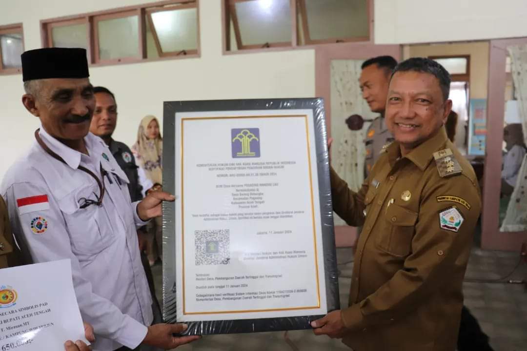 Keizalinnews.com|Takengon– Penjabat Bupati Aceh Tengah, T. Mirzuan, MT menghadiri penyampaian Terima Laporan Tahunan Tutup Buku BUMDesMa Pegasing Mandiri LKD T.A 2023, sekaligus menyerahkan secara simbolis PAD penyertaan modal kepada Reje se-Kecamatan Pegasing, yang berlangsung di Aula Kantor Camat Pegasing, Senin (15/01/2024).