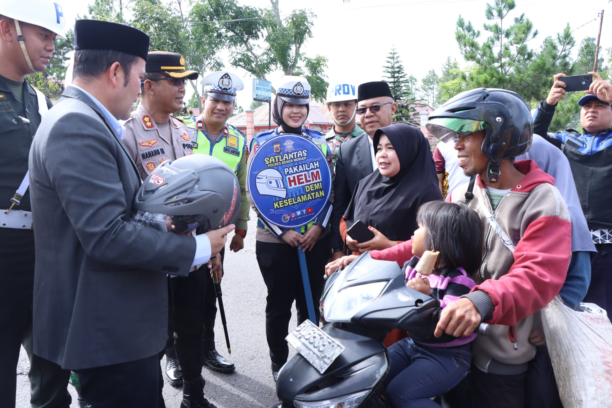 Kapolres Nanang Indra Bakti menjelaskan bahwa kegiatan tersebut bertujuan untuk meningkatkan kesadaran pengguna jalan agar patuh terhadap peraturan lalulintas serta selalu menggunakan helm saat berkendara.