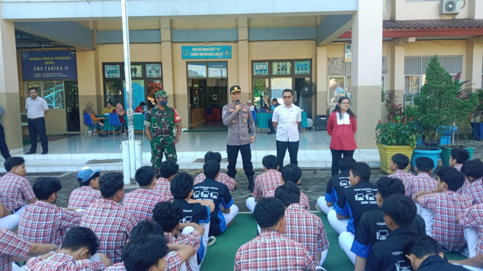 Hal ini dilakukan oleh jajaran Polsek Jatisampurna melalui Kanit Binmas Iptu Limbong didampingi Bhabinkamtibmas kelurahan Jatirangga Bripka Yasir Arfaki yang mengunjungi SMK Yadika 11 RT 002/003, Kelurahan Jatirangga Kecamatan Jatisampurna pada Selasa (19/03/24).