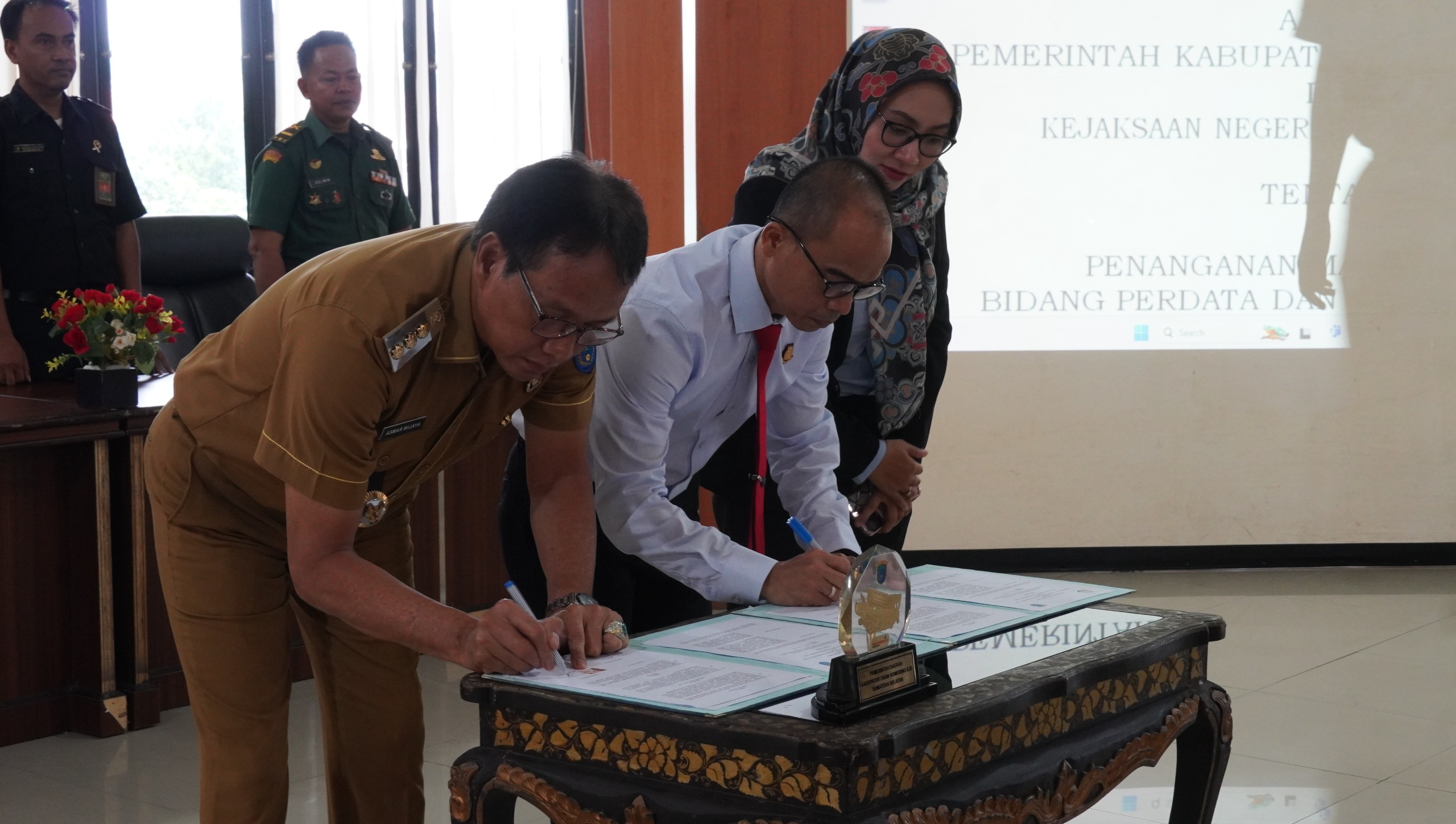 Penandatanganan memorandum of understanding (MoU) tersebut dilakukan oleh Pj Bupati OKI, Asmar Wijaya, M.Si dengan Kepala Kejaksaan Negeri (Kejari) OKI, Hendri Hanafi, SH, MH. di Ruang Rapat Bende Seguguk dua, Kabupaten OKI. Selasa, (19/03/2024).